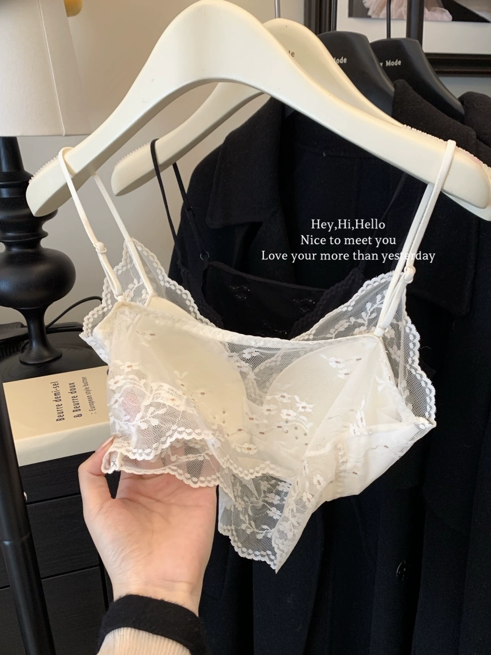| nameOriginal | Beautiful back white small strap bra all in one sexy lace |