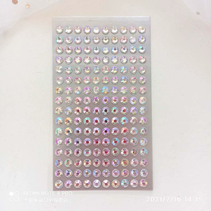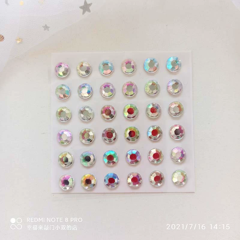 Beautiful bling shiny single grain self-adhesive transparent AB color acrylic diamond sticker performance decorative face sticker