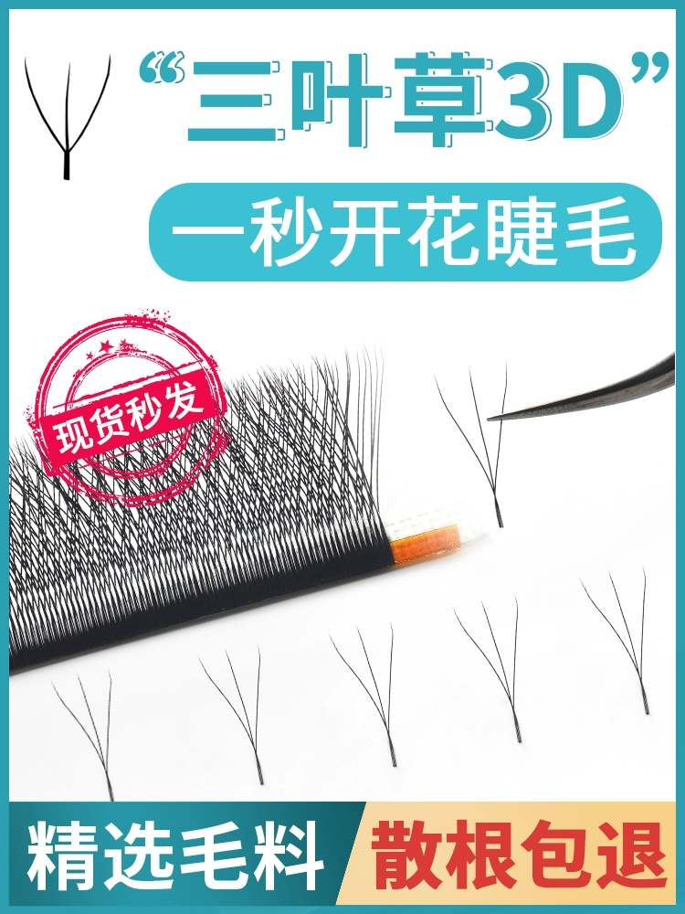 Beautiful eyelashes clover grafted eyelashes 0.05YY automatic planting false eyelashes 3-leaf clover super soft blooming in one second 3D