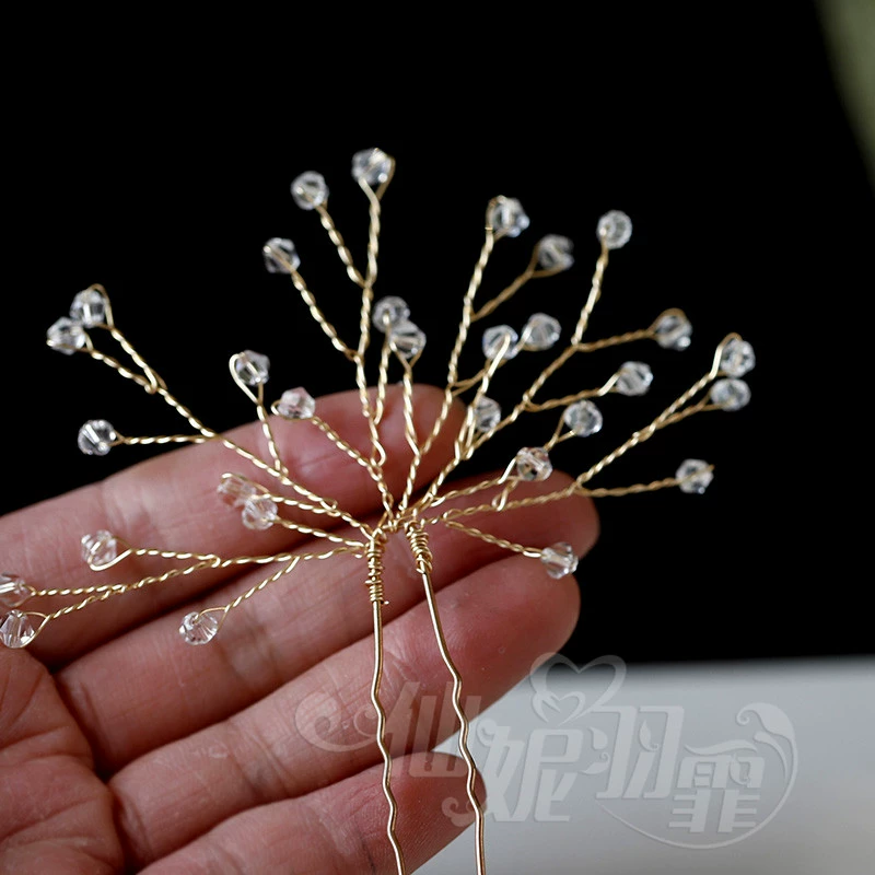 | nameOriginal | Beautiful Korean bridal hairpin hairpin crystal hair fork pin U-shaped clip gold hair ornaments head flower wedding |