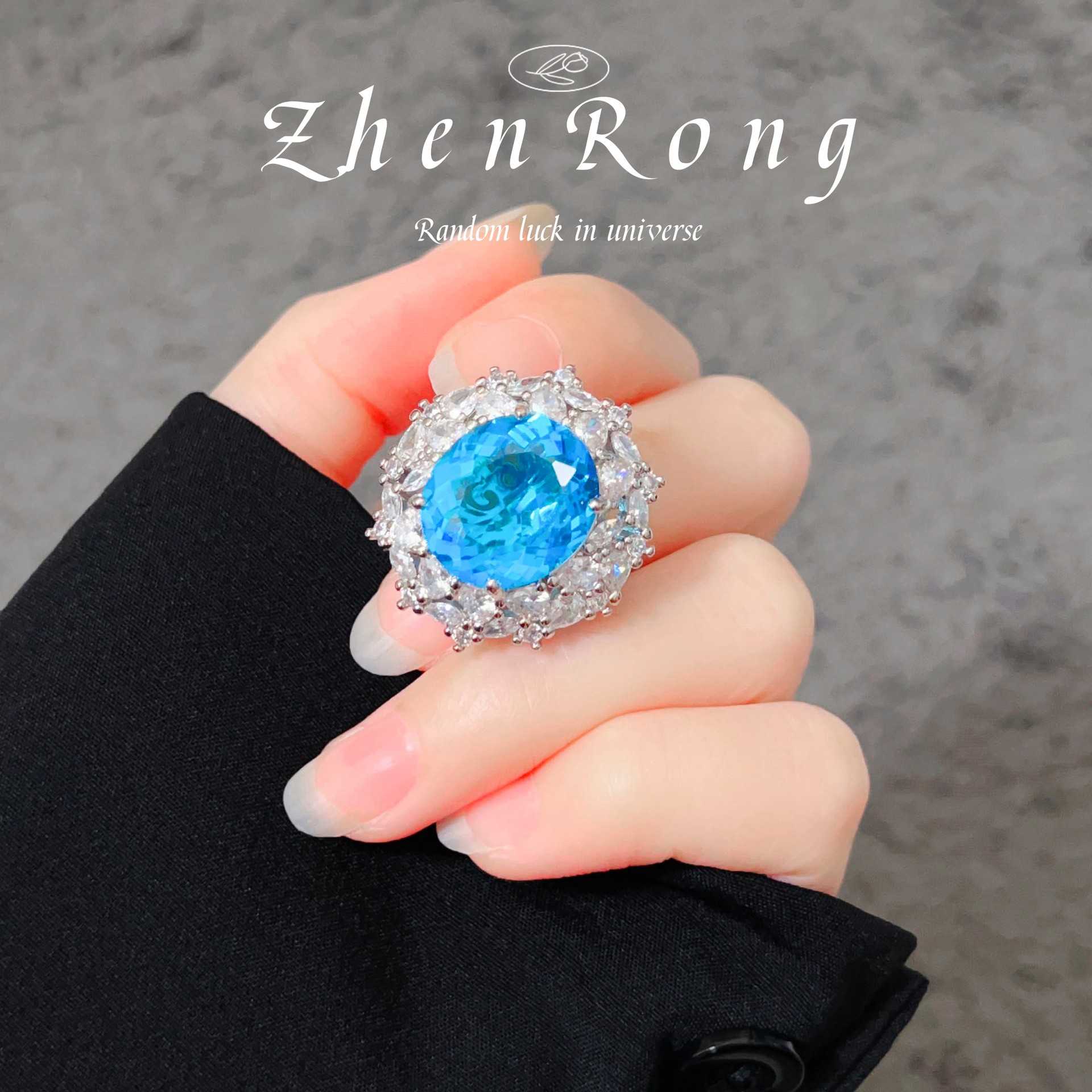 Beautiful Legend of the Blue Sea High-end Aquamarine Pendant Necklace Light Luxury Ring Caibao Earrings Set for Women