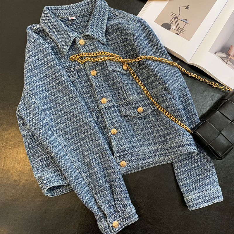 | nameOriginal | Beautiful! One ding needs to be collected! Heavy industry woven loose contrast color retro gold buckle Denim coat for women early autumn |