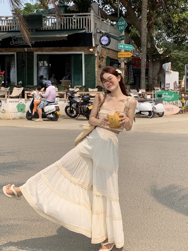 | nameOriginal | Beautiful spring hollow vest with lace suspenders in holiday style |