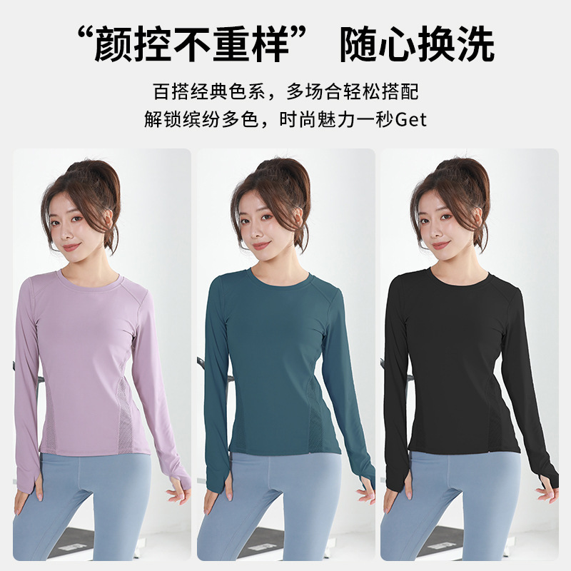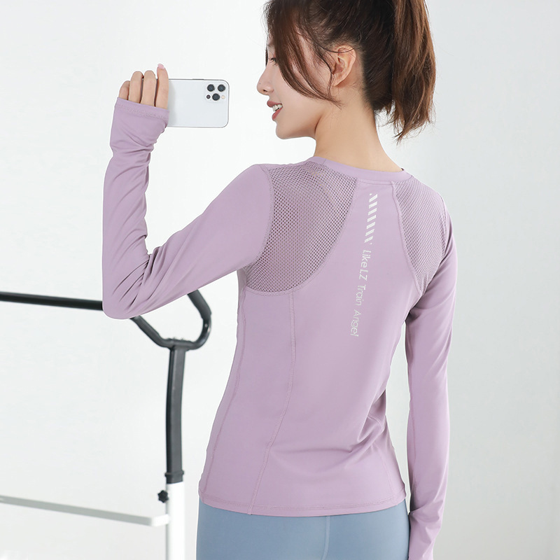 | nameOriginal | Beauty back mesh yoga clothes long-sleeved sports top women's round neck slim fit quick-drying breathable running fitness sports T-shirt |