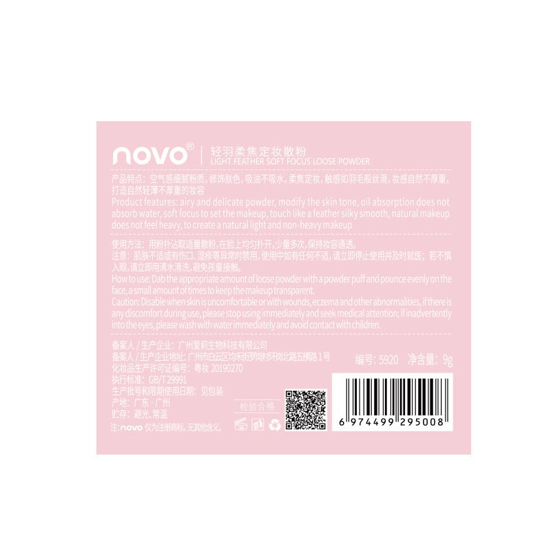 | nameOriginal | Beauty NOVO light feather soft focus makeup loose powder oil control concealer waterproof sweat-proof non-makeup student party honey cake |