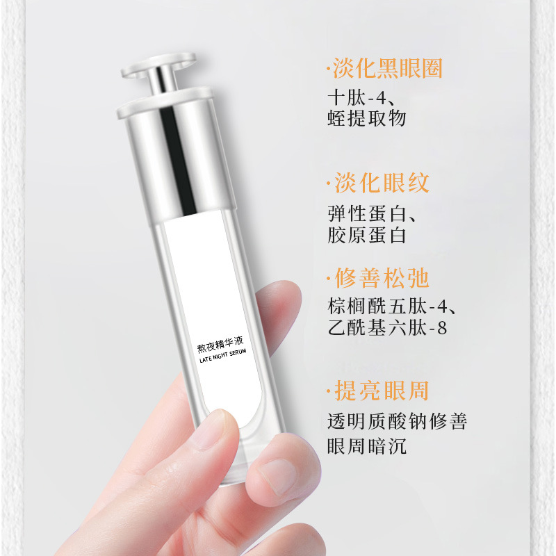 | nameOriginal | Beauty salon eye care essence fade eye pattern eye bag tear groove dark circles hirudin staying up night essence |