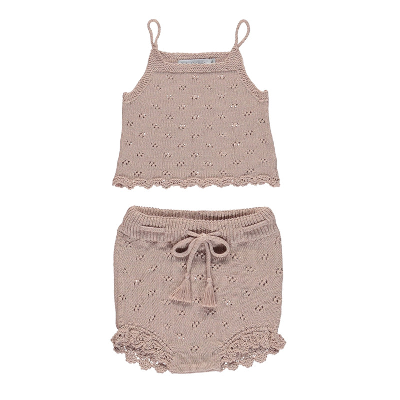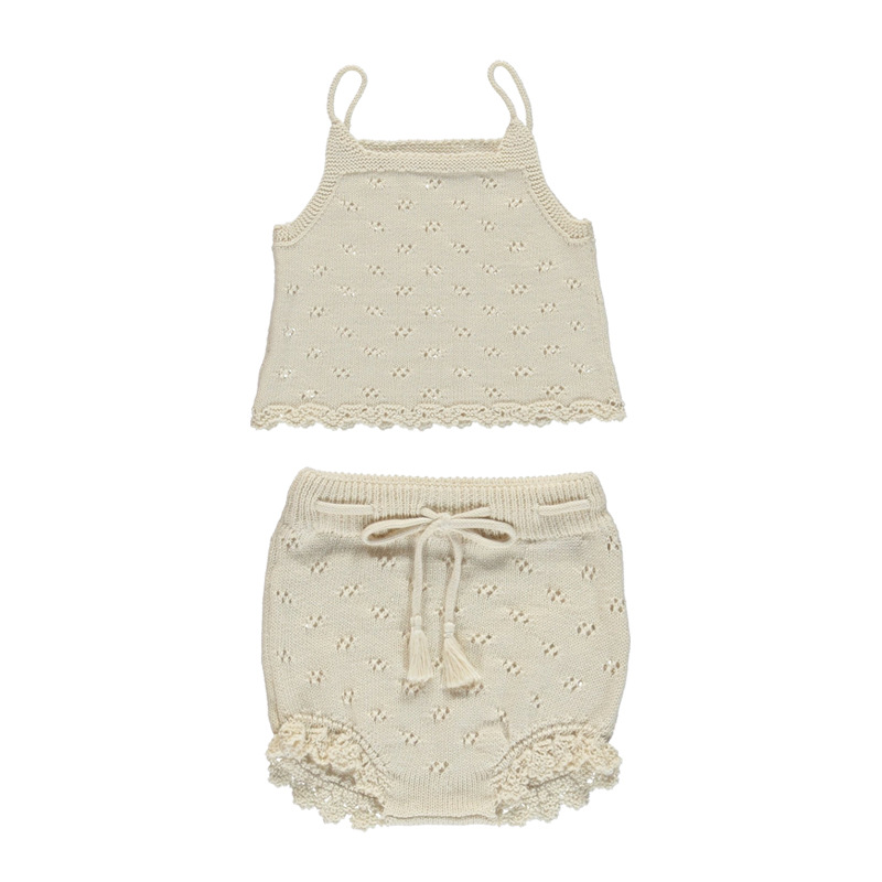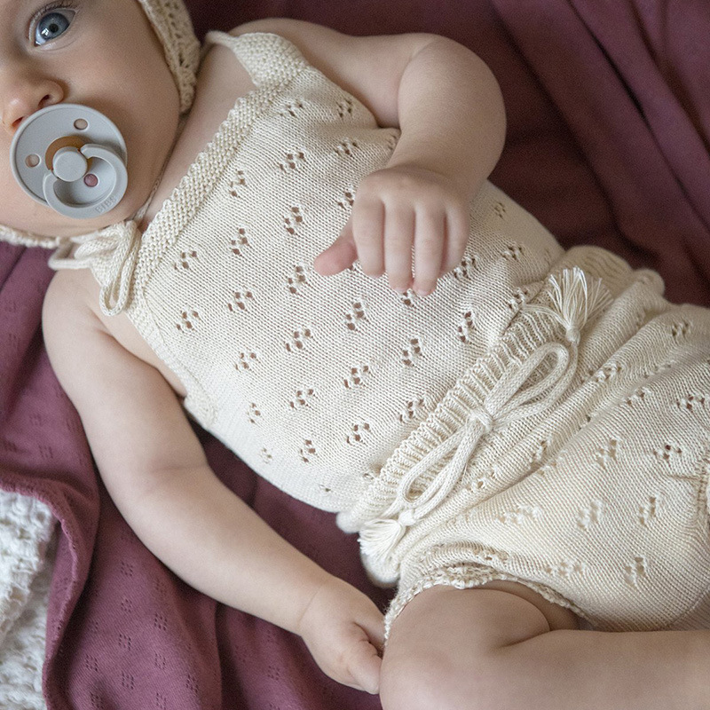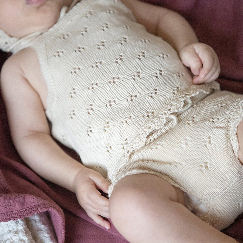 | nameOriginal | Bebe Organic New Baby Cotton hollow strap summer girls thin knitted vest shorts suit |