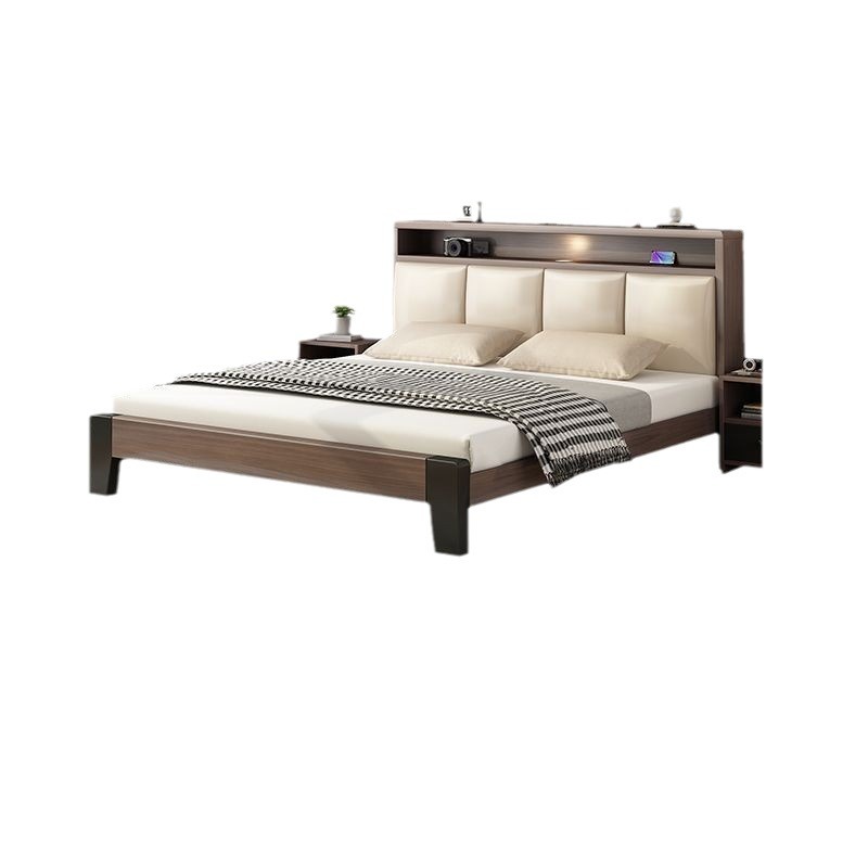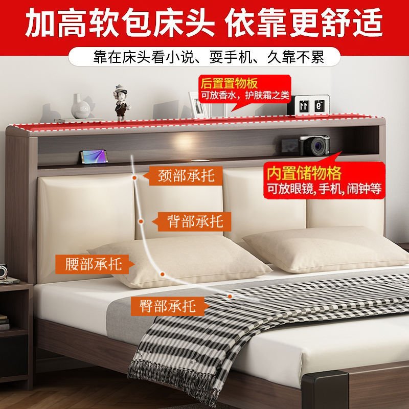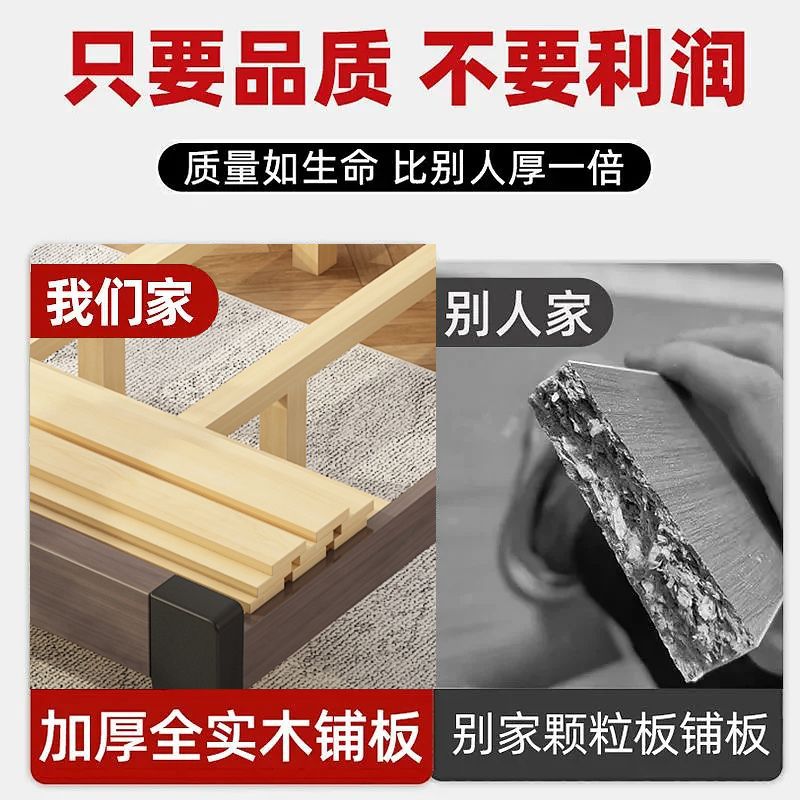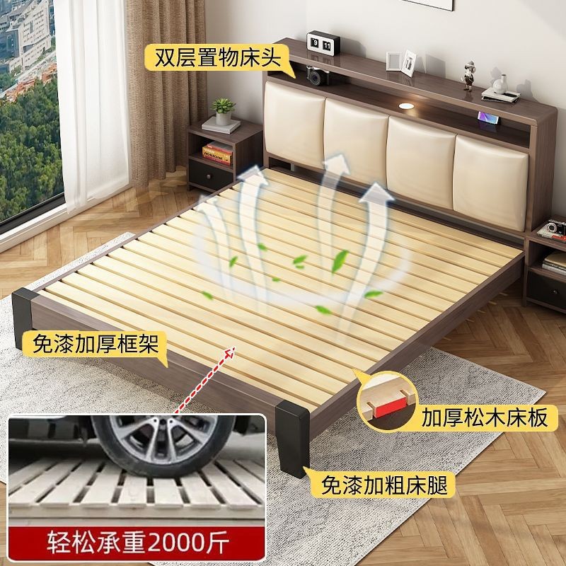 Bed Solid Wooden Bed Modern Simple 1.2m Light Luxury Home Double Bed Master Bedroom 1.8m Simple Small Apartment Single Bed Frame