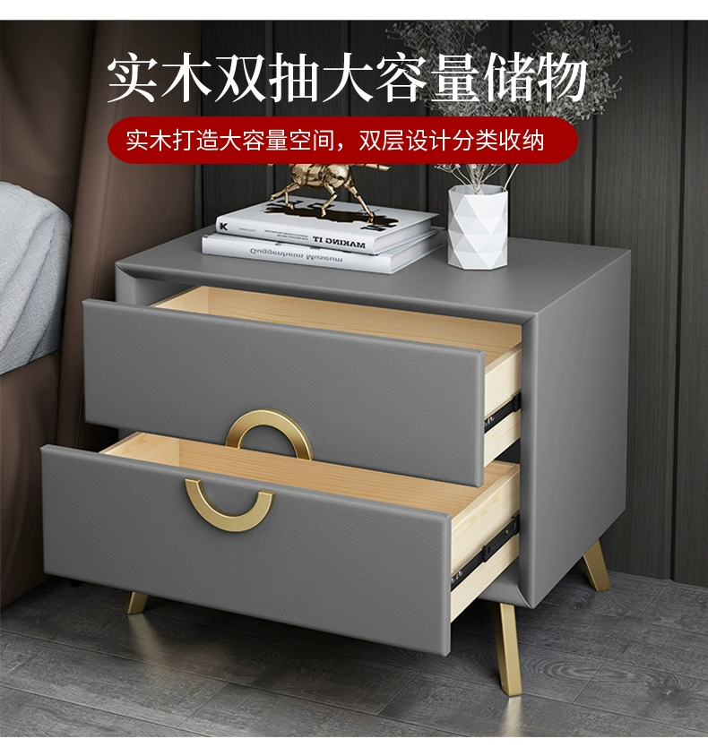 | nameOriginal | Bedside table simple modern bedroom light luxury high-end solid wood bedside cabinet storage cabinet small leather storage rack |