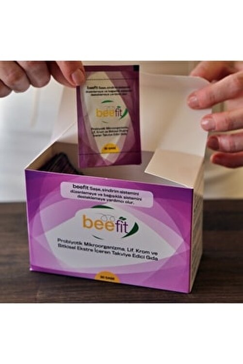 Contains a total of 90 Beefit cartons with 3 boxes of Beefit. Bee Fit Sake is developed by Dietitian Hülya Çağatay. It contains probiotics, minerals, prebiotics, plant extracts that will support weight loss. Ingredients Isomalt -E953, Fiber (oat fiber), Banana flavor, Bromelain, Green coffee seed extract, Inulin, Bifidobacterium lactis, Magnesium salts of fatty acids -E470b, Beta glucan, Sucraloz-E955, Chromium picolinate. Method of Use For adults, it is recommended to use 1 sake per day by mixing in a quantity of water.