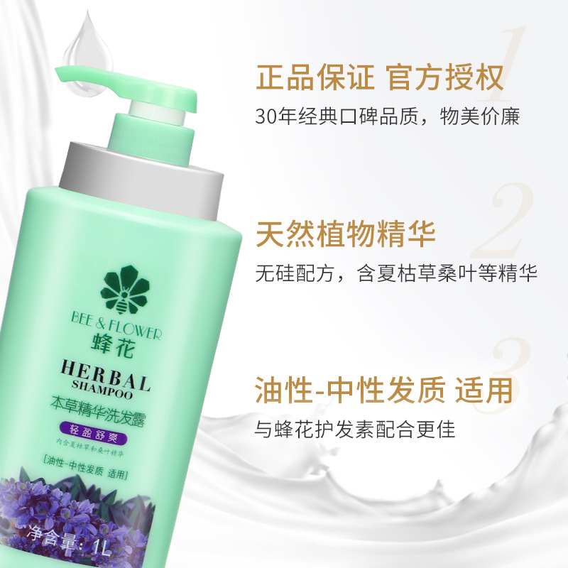 | nameOriginal | Bee Flower Shampoo 1L Herb Essence Oil Control Fluffy and Soft Large Bottle Family Pack Authentic Shampoo for Men and Women |