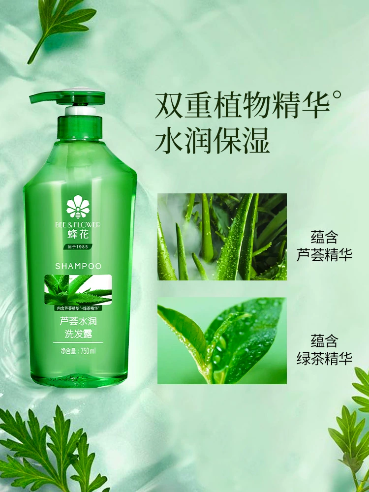 | nameOriginal | Bee flower silicone-free shampoo, moisturizing and oil-removing, smooth and smooth aloe vera green tea, fluffy and refreshing shampoo for men and women |