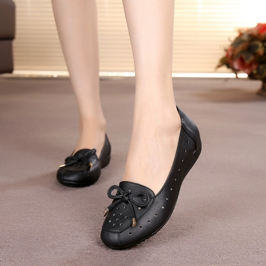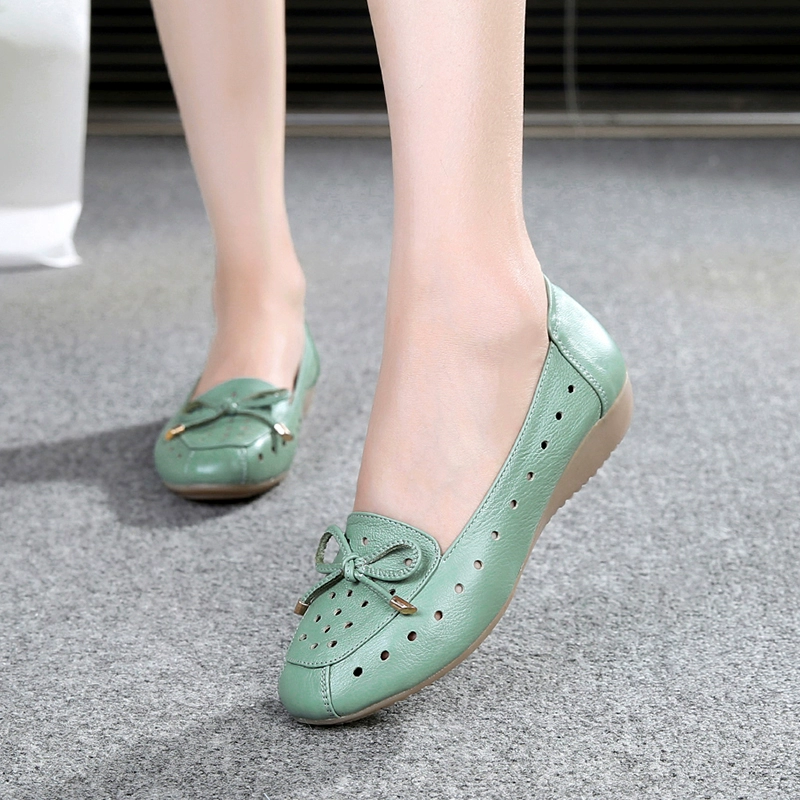 Beef tendon sole mother's shoes summer genuine leather hollow hole shoes middle-aged and elderly women's sandals versatile casual flat leather shoes