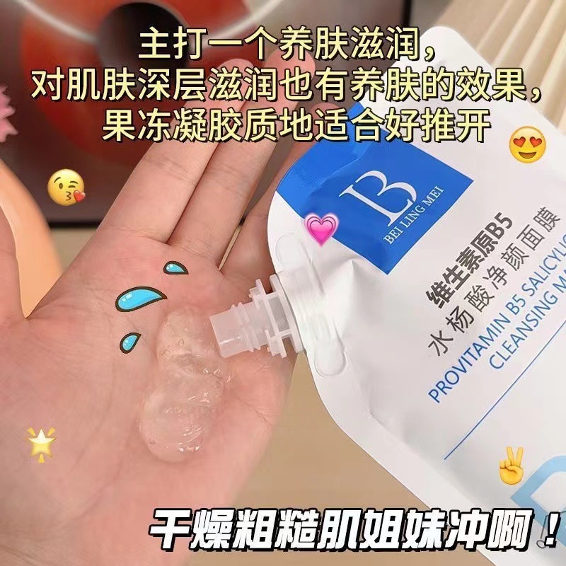 | nameOriginal | Bei Lingmei Vitamin B5 Salicylic Acid Cleansing Mask Fades Blackhead Mild Deep Cleansing Mask |