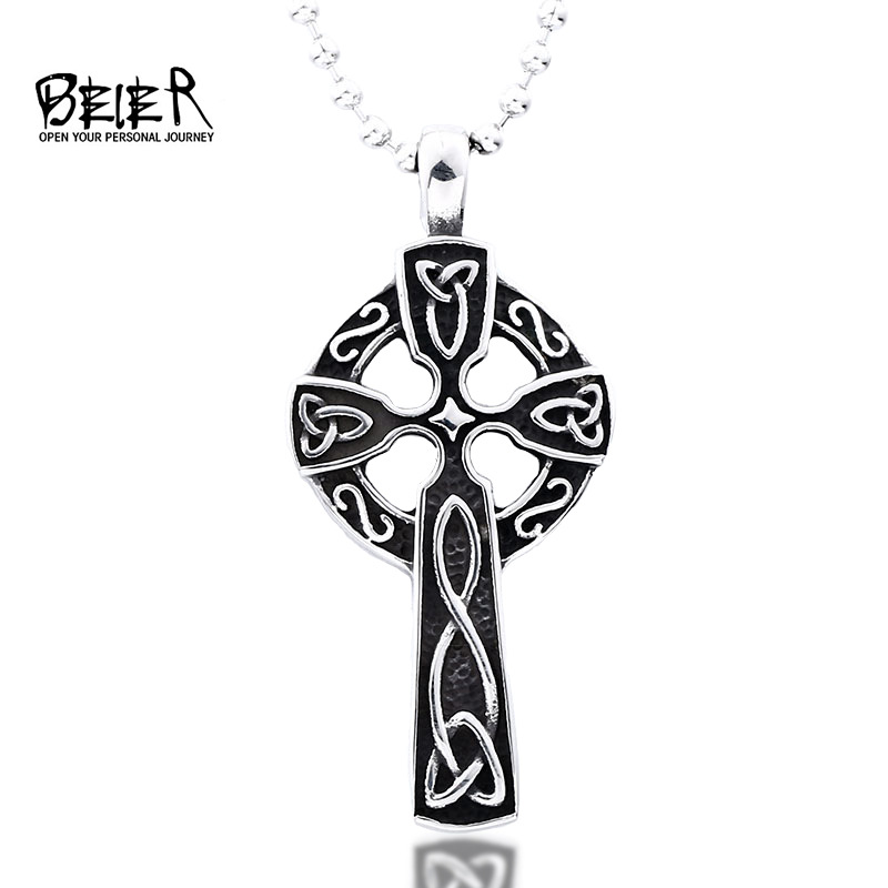 beier New Cross Pendant Stainless Steel Viking Celtic Knot Pendant Simple Retro Titanium Steel Accessories