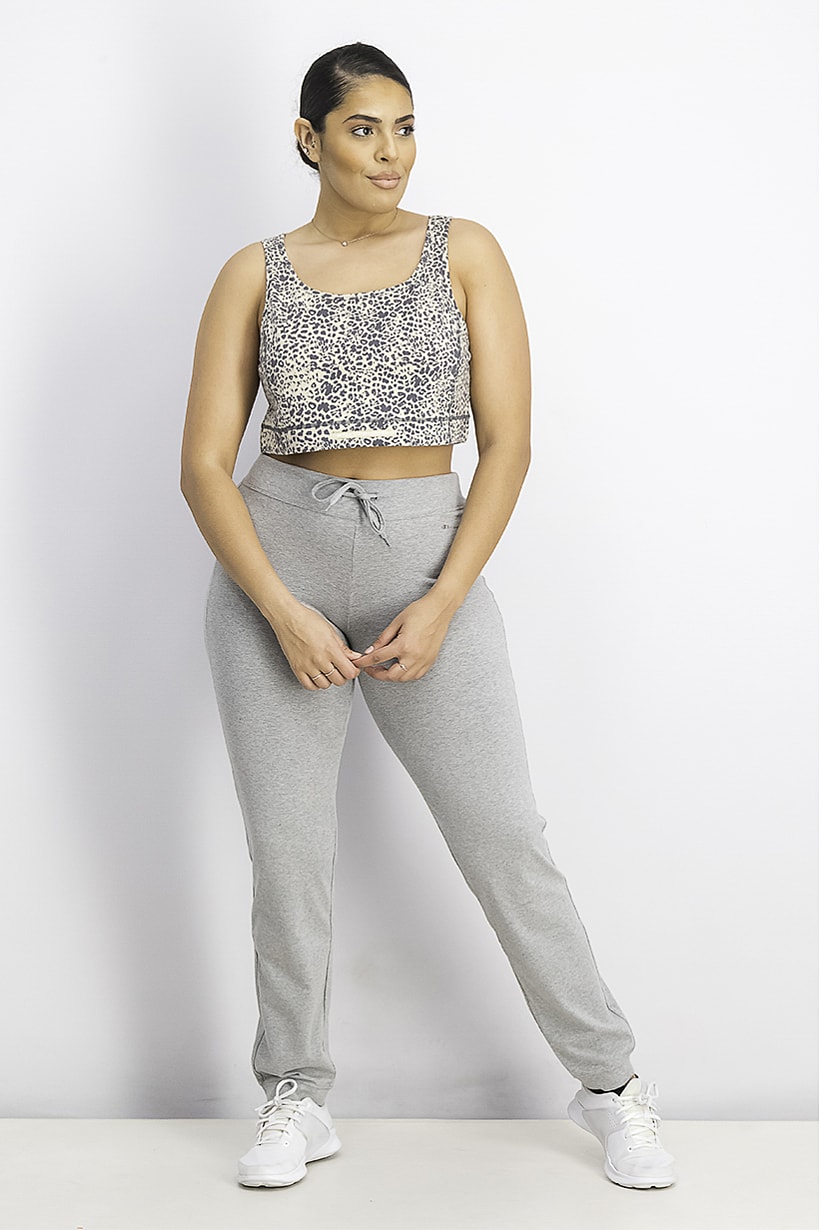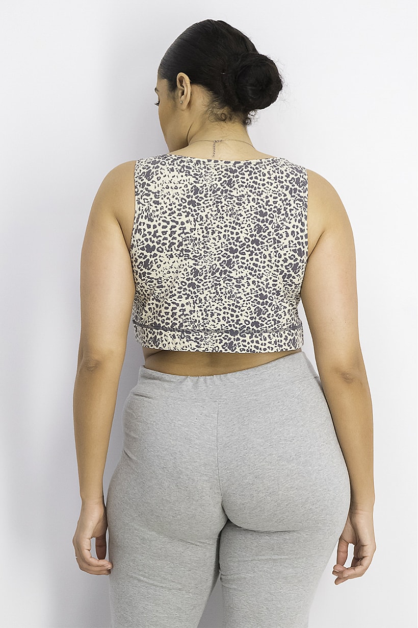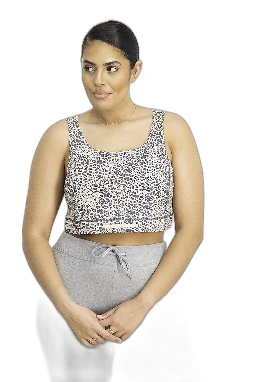 Beige and Grey Cheetah Sports Top for Women with Regular Fit.