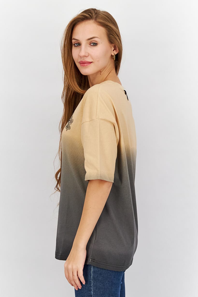 | nameOriginal | Women Sports Fit Colorblock Training T-shirt, Beige and Grey |