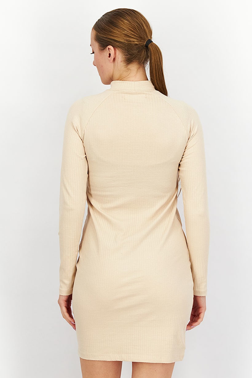 | nameOriginal | Women Textured Mock Neck Long Sleeve Bodycon Dress, Beige |