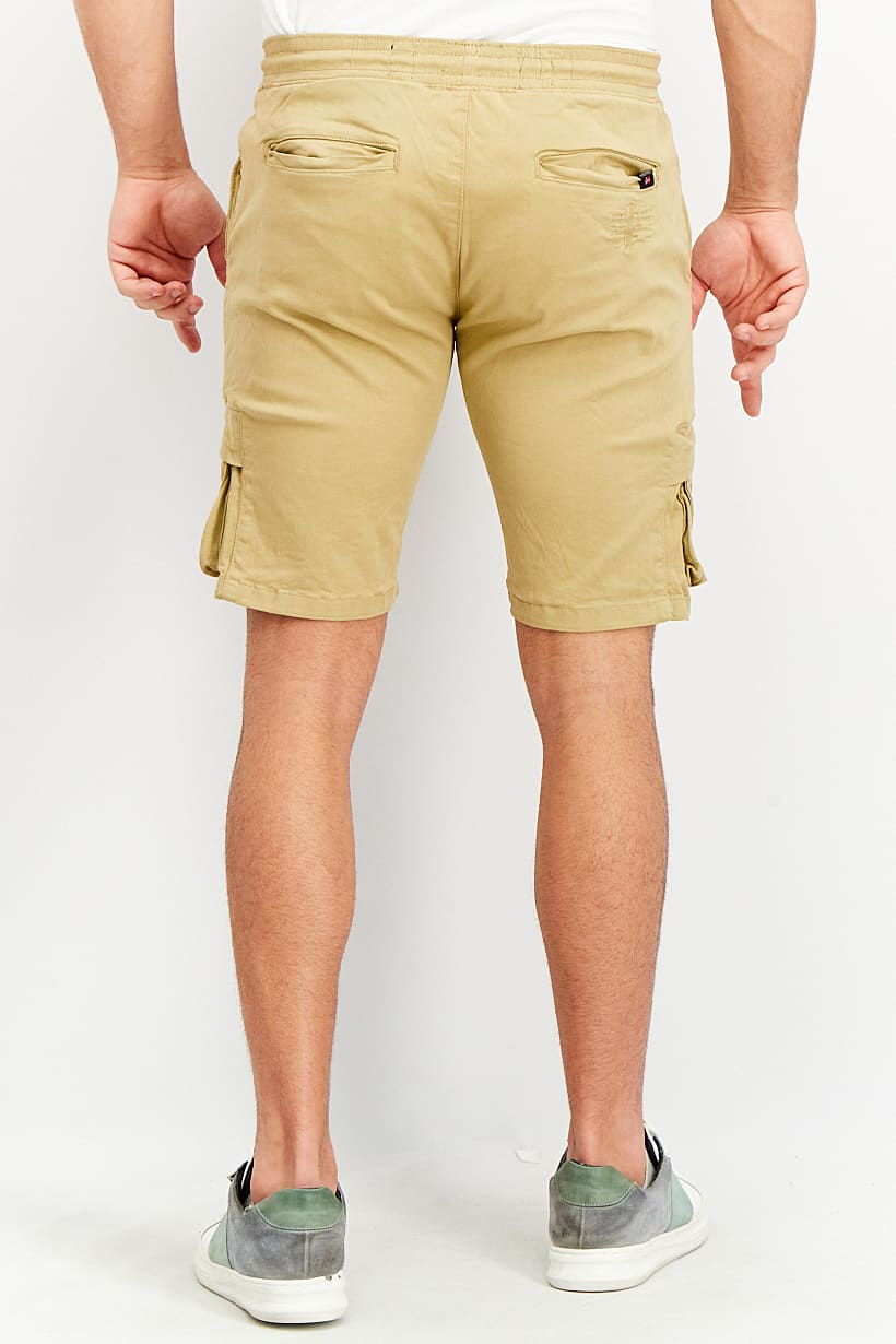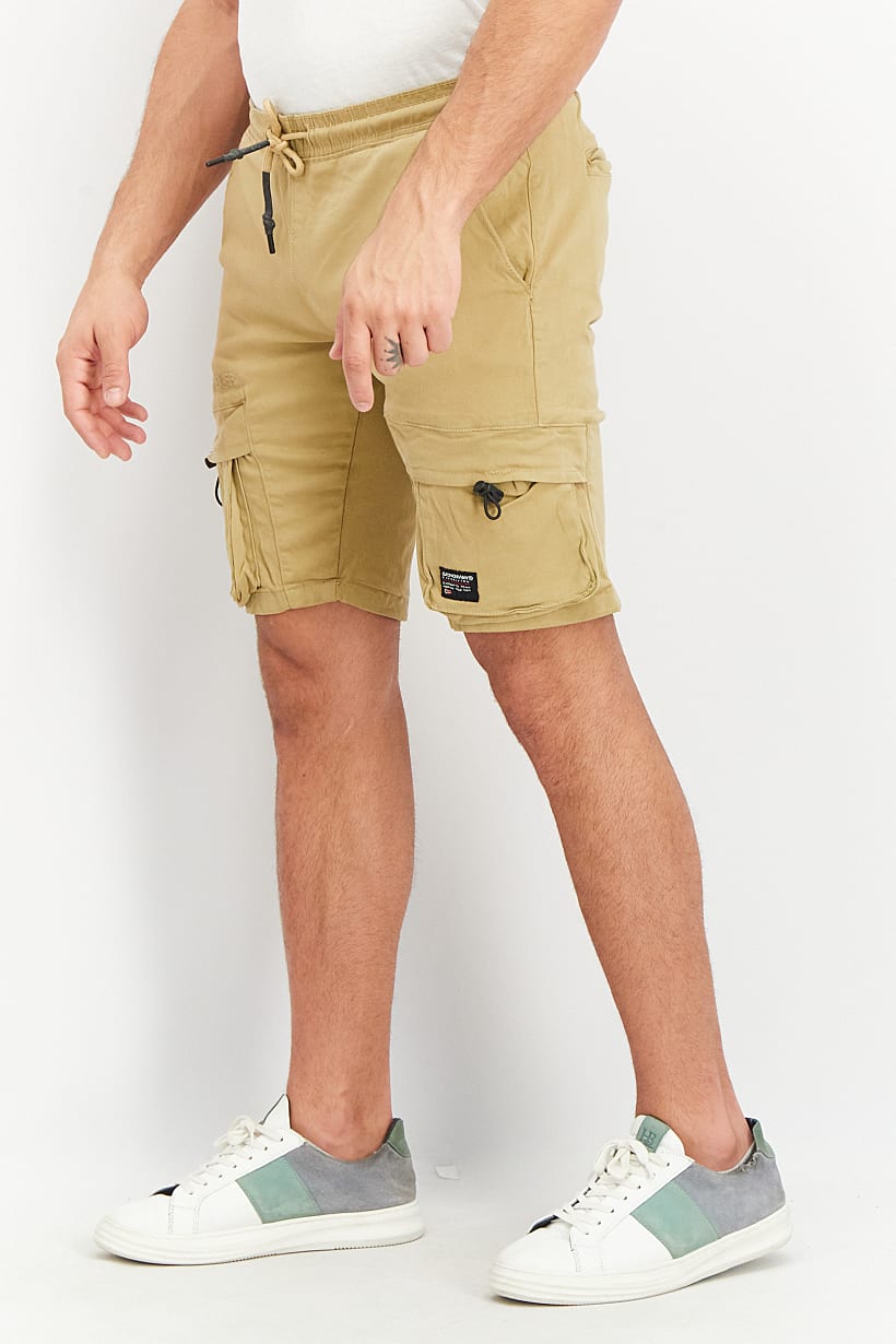 | nameOriginal | Men Regular Fit Drawstring Embroidered Cargo Short, Beige |