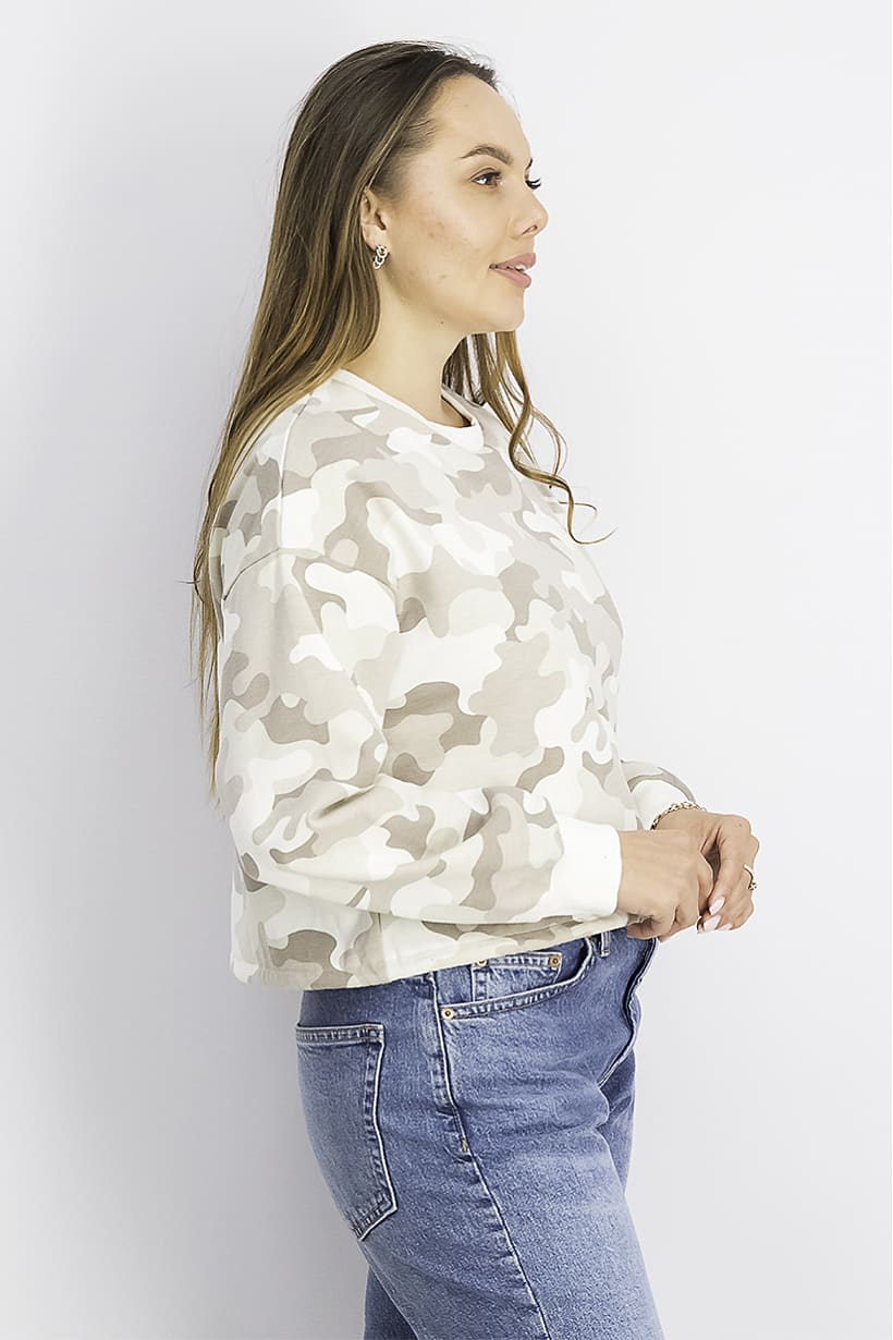 | nameOriginal | Women Crew Neck Long Sleeve Camouflage Sweatshirt, Beige Combo |