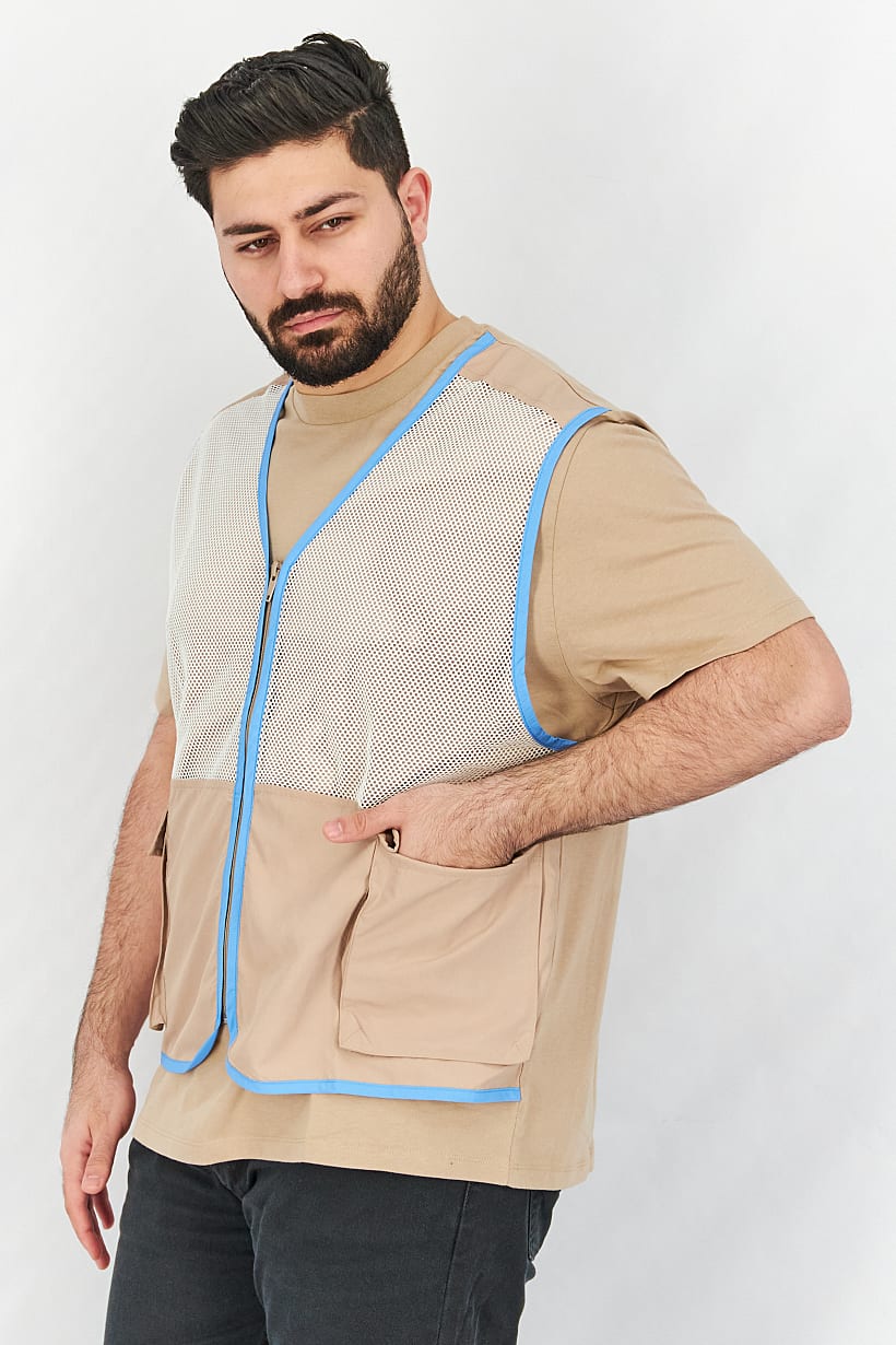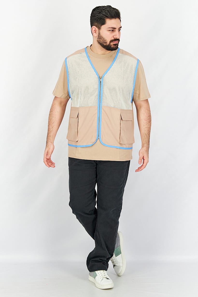 Beige Combo Textured Men’s Crew Neck T-Shirt with Short Sleeves.