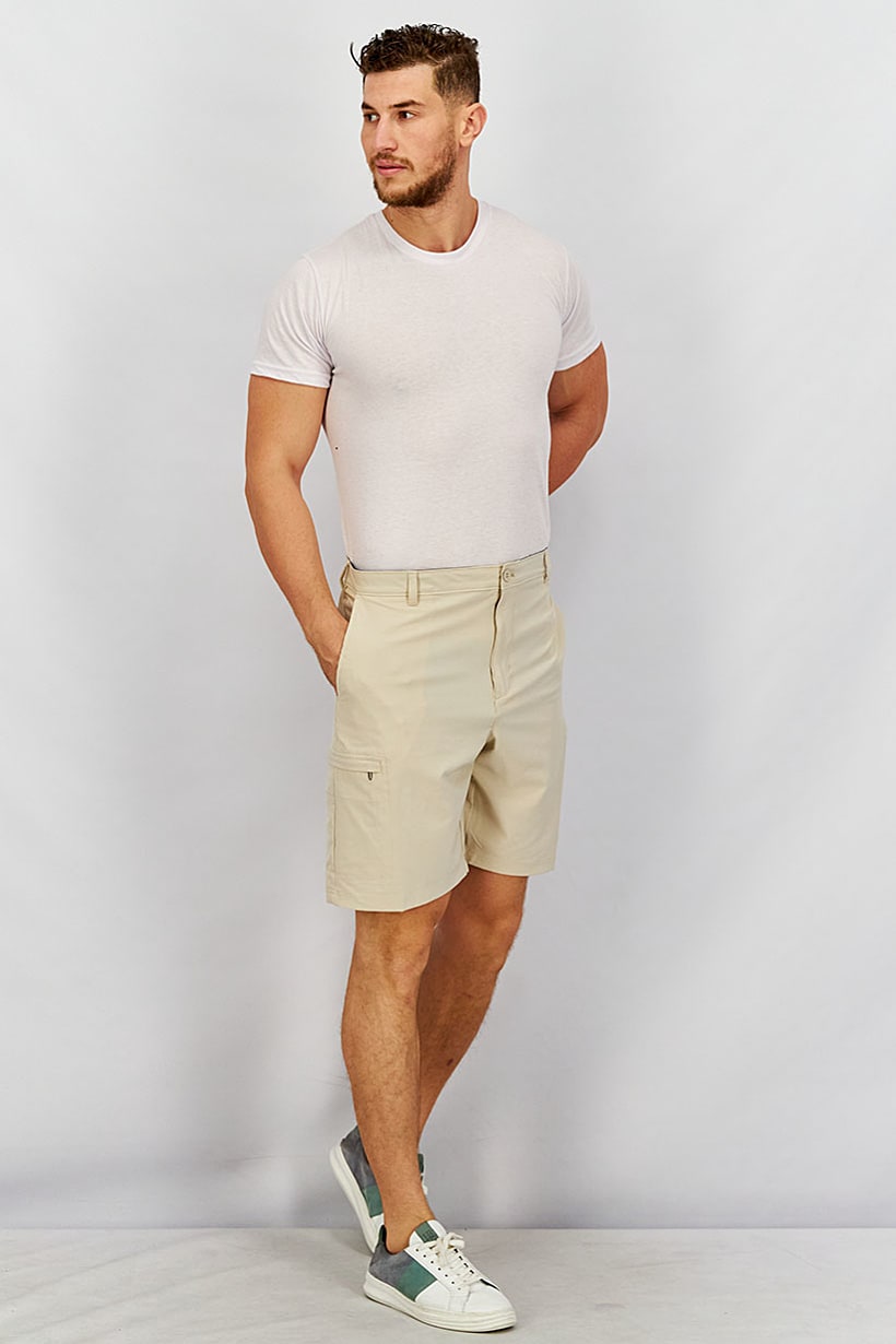 Bottom Hem : Straight, Care : Machine washable, Fit : Straight, Size shown : Inches, Thickness : Light, Type of Short : Sport short, Type of Sport : Golf, Bottom Closure : Zipper fly, Disclaimer : Product color may slightly vary due to photographic lighting sources or your monitor settings., Fabrics : 94% Polyester, 6% Elastane, Occasion : Sport, Pattern & Print : Plain/Solid, Sportswear Type : Shorts, Color Family : Beige,