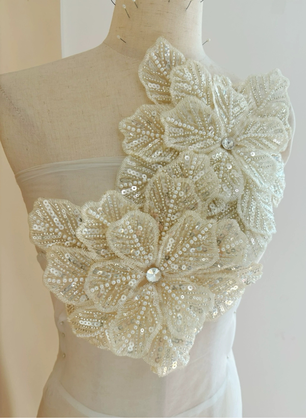 | nameOriginal | Beige heavy industry three-dimensional dress wedding dress show flowers |
