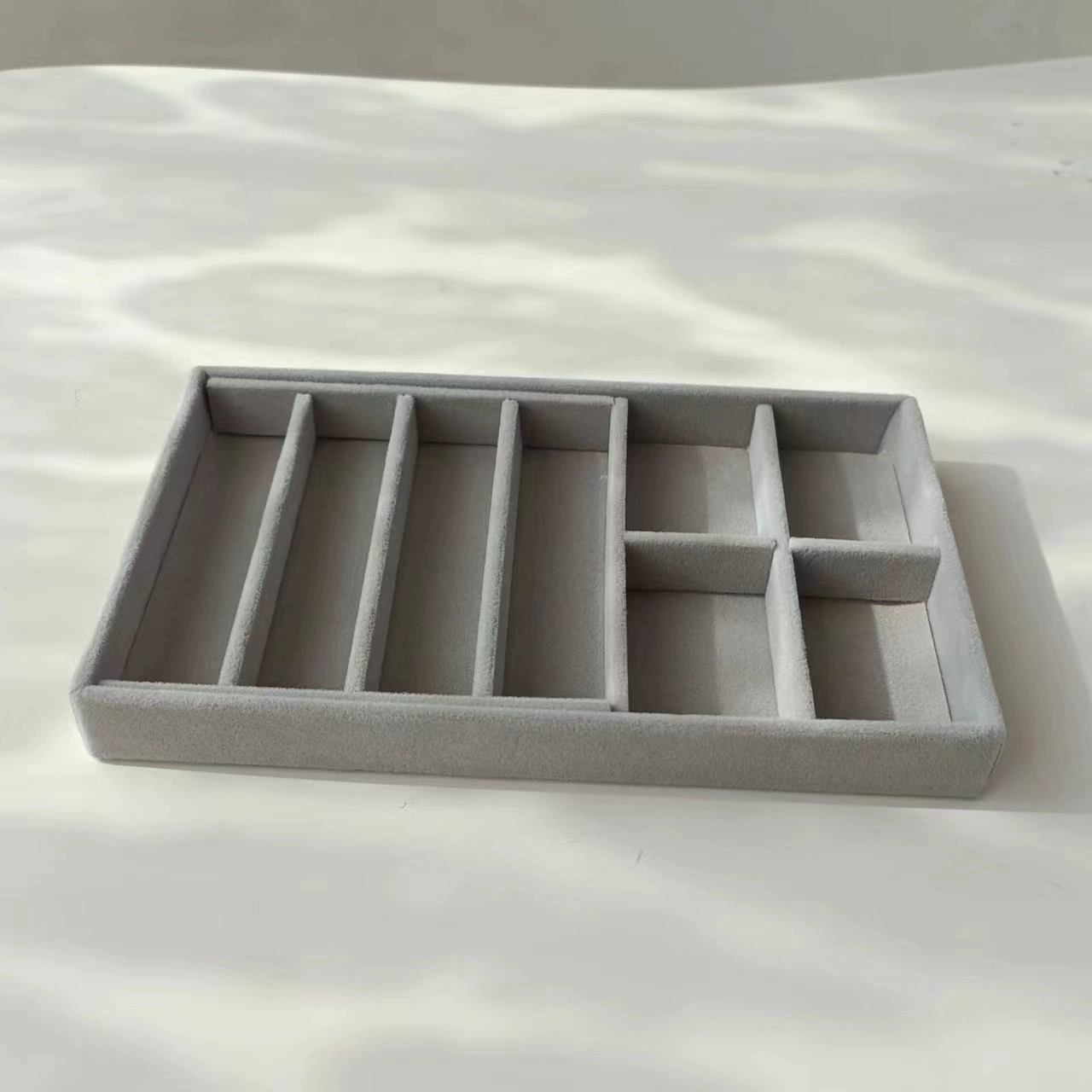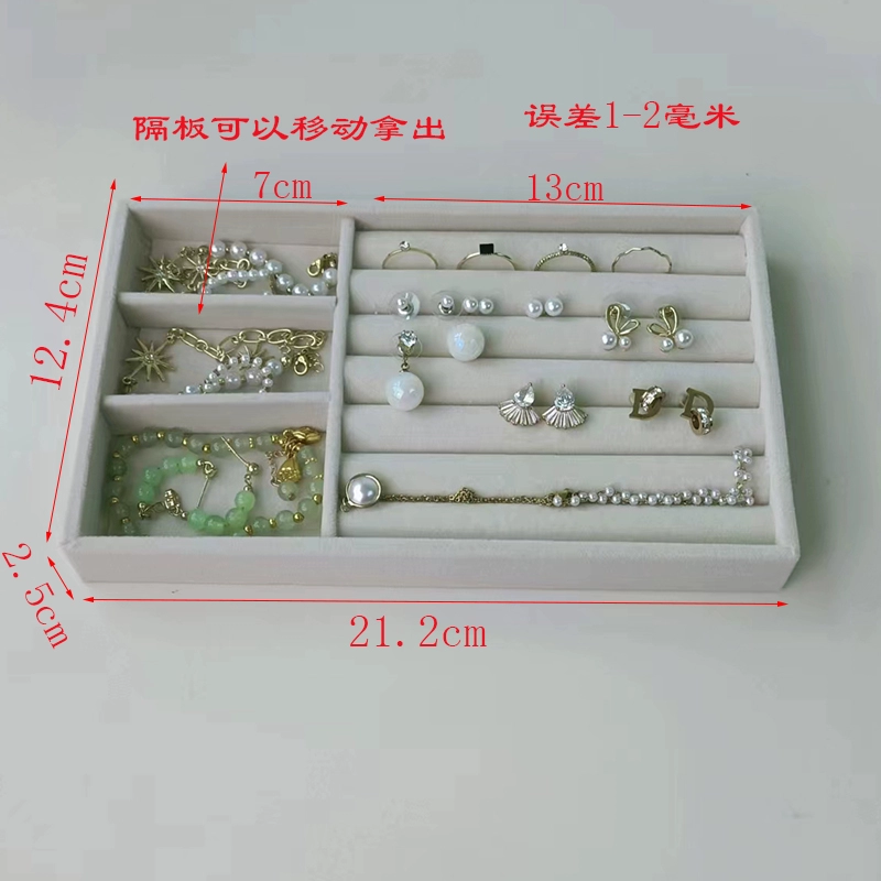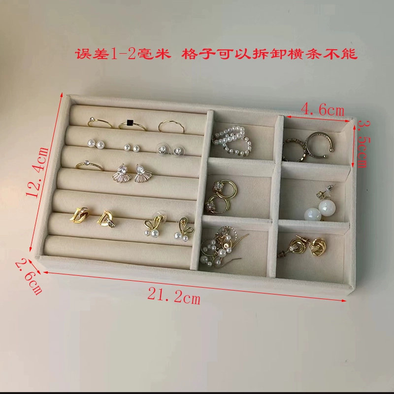 | nameOriginal | Beige jewelry storage box tray earrings necklace ring separated velvet storage tray drawer jewelry lattice box |