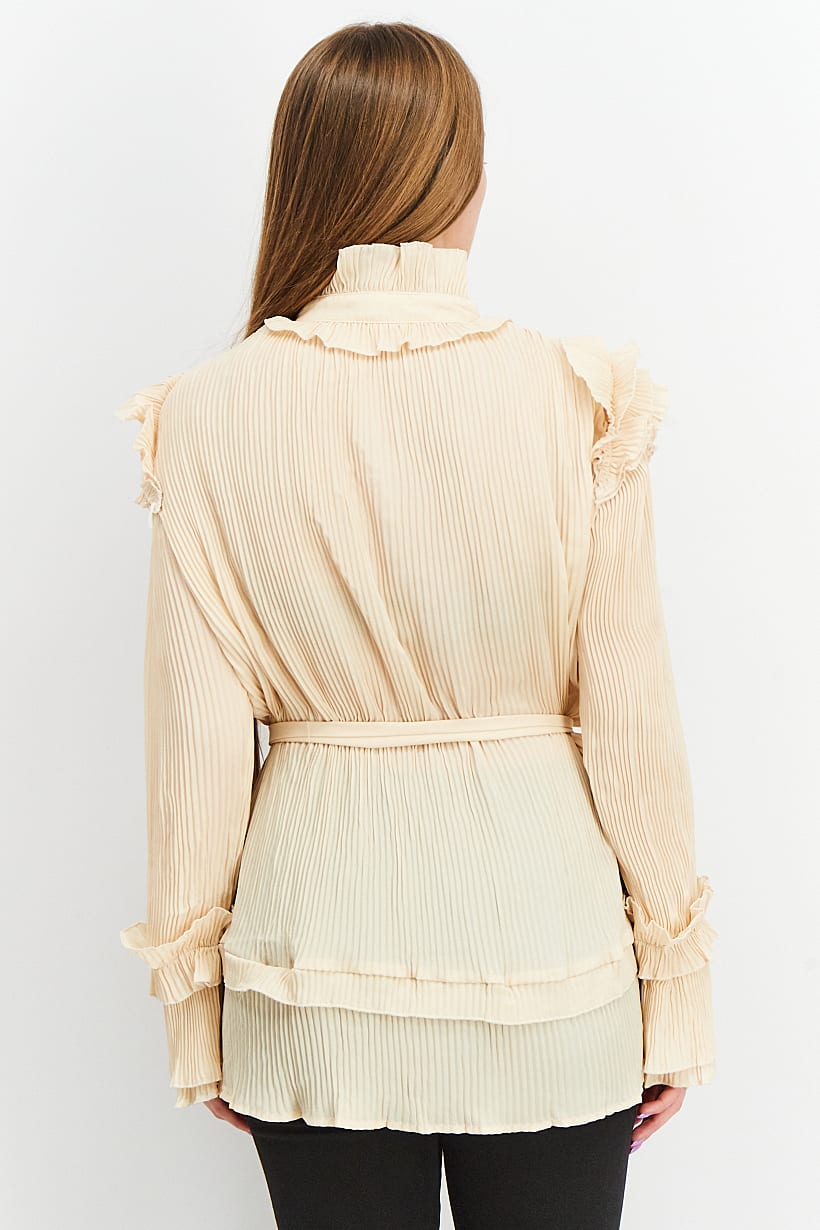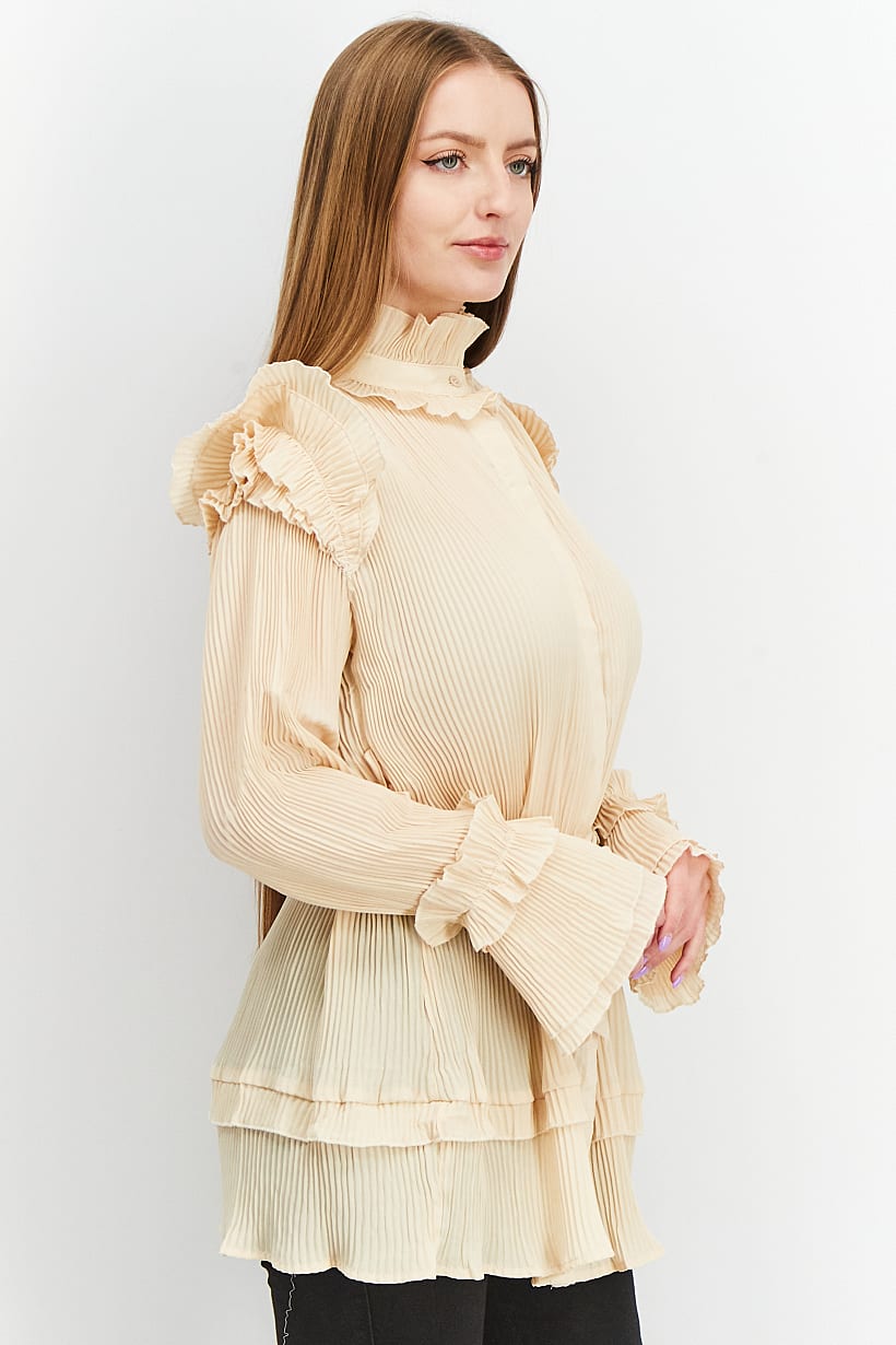 | nameOriginal | Women Ruffle Neck Pleated Long Sleeve Blouse, Beige |
