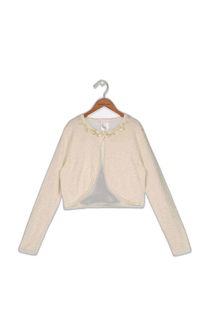 | sub_Categories | Girls Fashion, kids girl venise trimmed neckline lurex cardigan beige |