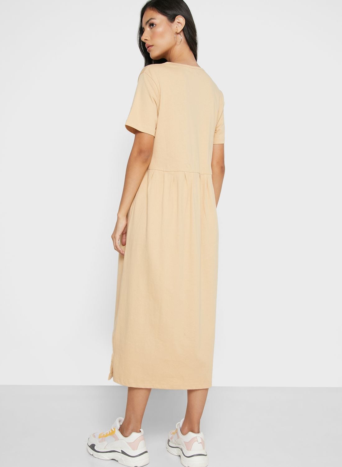 | nameOriginal | Pleated T-Shirt Midi Dress Beige |