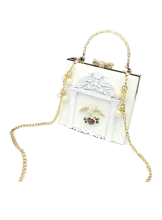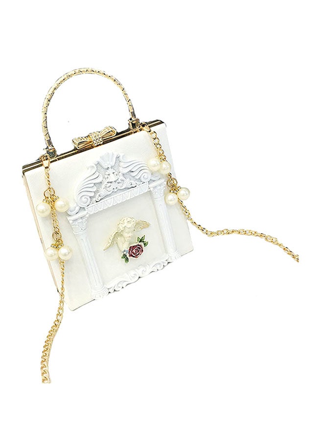 Beige Mini Bag with Stylish Pearl Inlay.