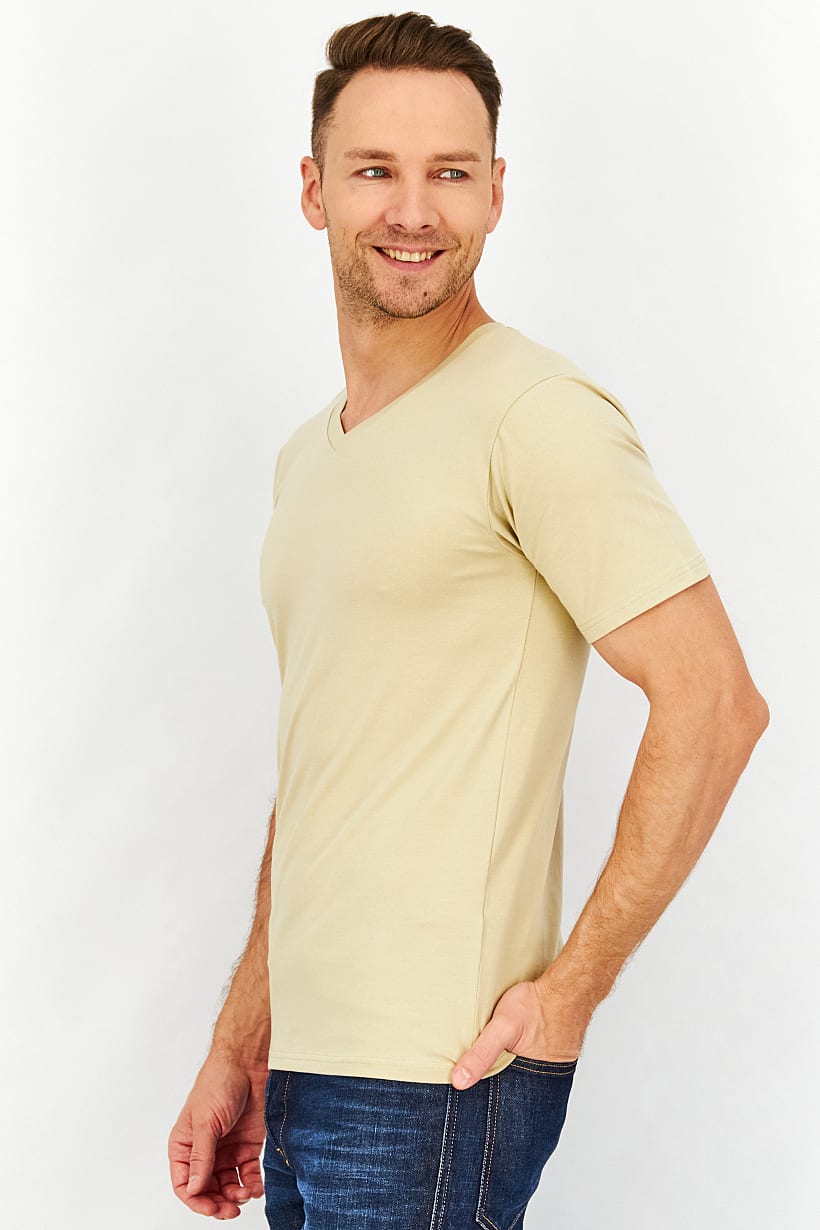 | nameOriginal | Men V-Neck Short Sleeve Plain T-Shirt, Beige |