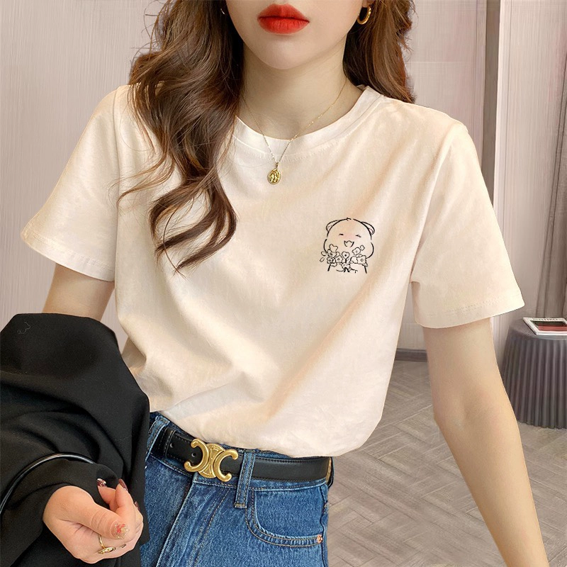 | nameOriginal | Beige short-sleeved T-shirt for women 2024 summer new style round neck loose shoulder top, fashionable and versatile T-shirt |