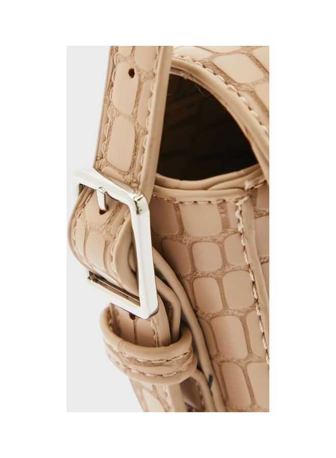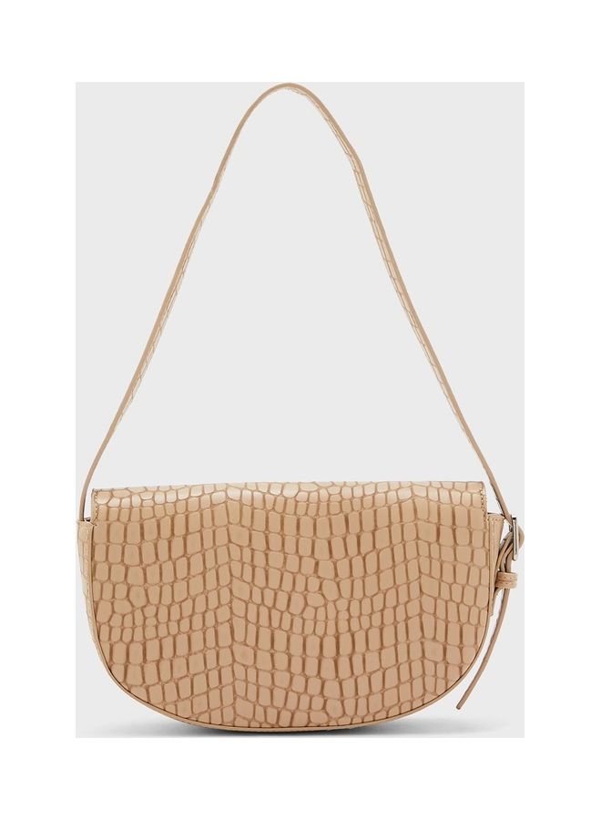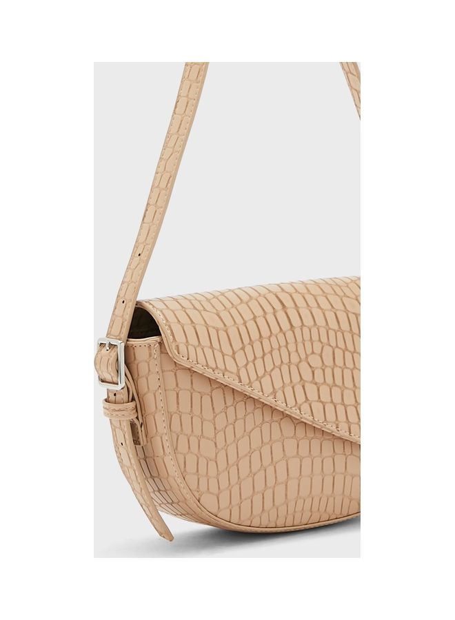 Beige Shoulder Bag with Asymmetric Saddle Design.