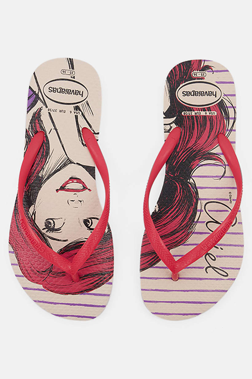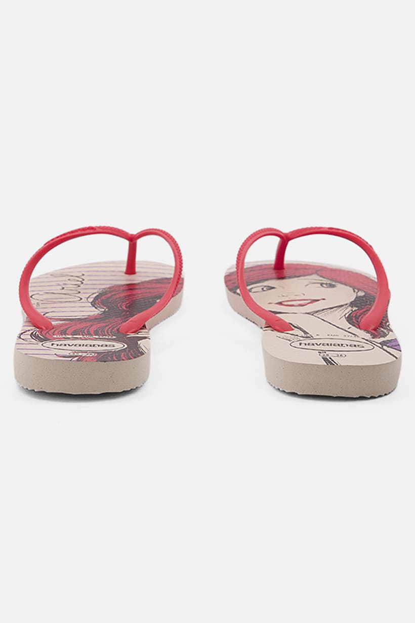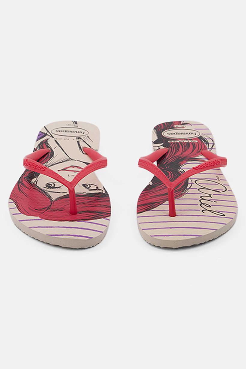 Beige/Strawberry Women’s Slim Flip-Flop Slipper with Princess Design.