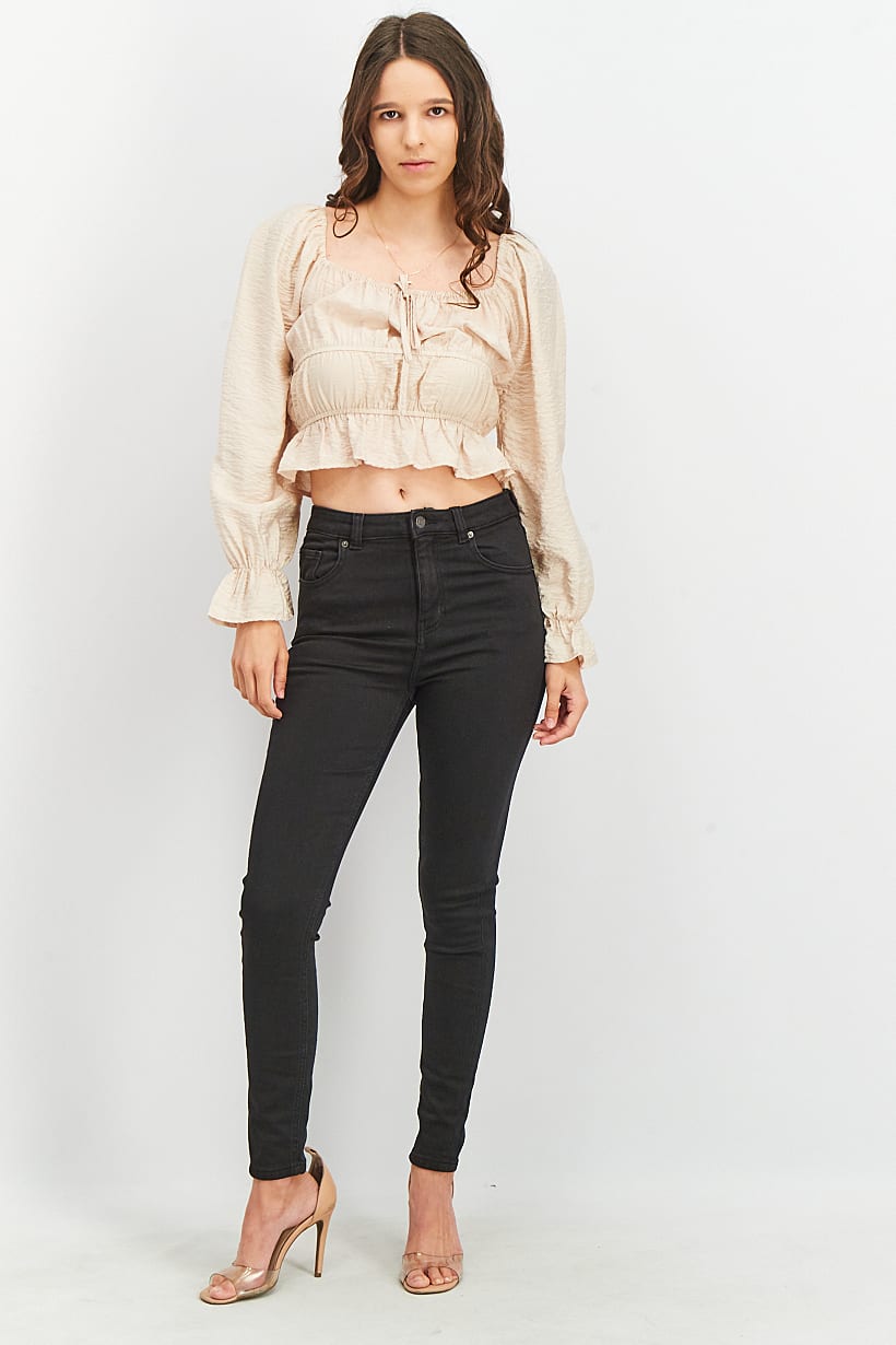 | sub_Categories | Women Clothing, Tops & Tees, women square neck long sleeve textured crop top beige |