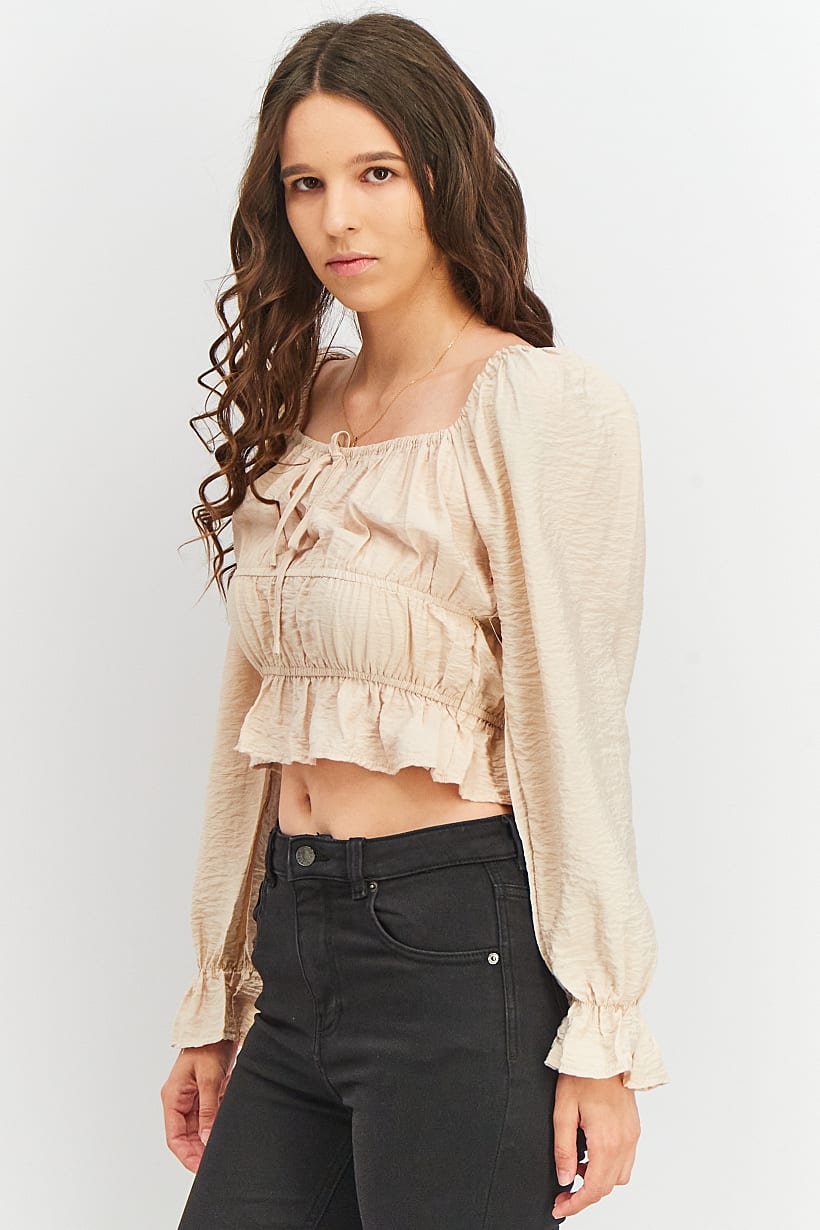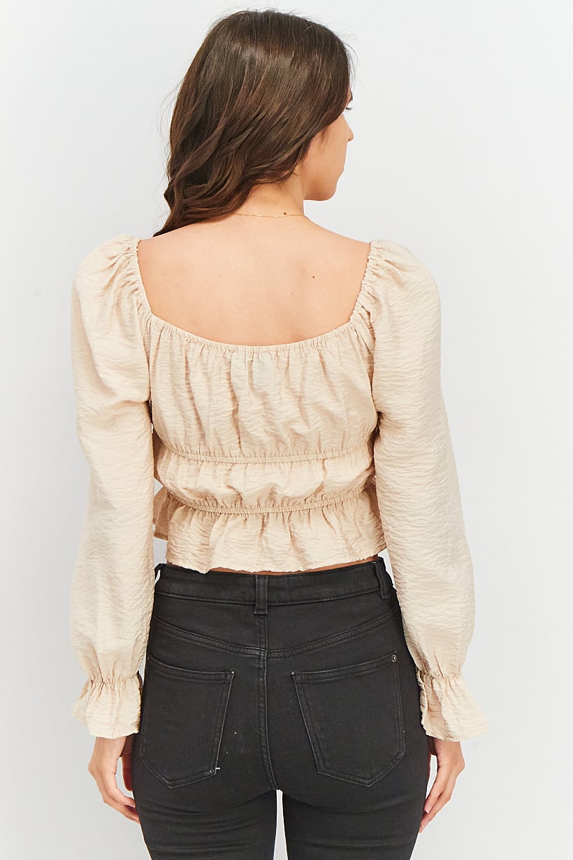 | nameOriginal | Women Square Neck Long Sleeve Textured Crop Top, Beige |
