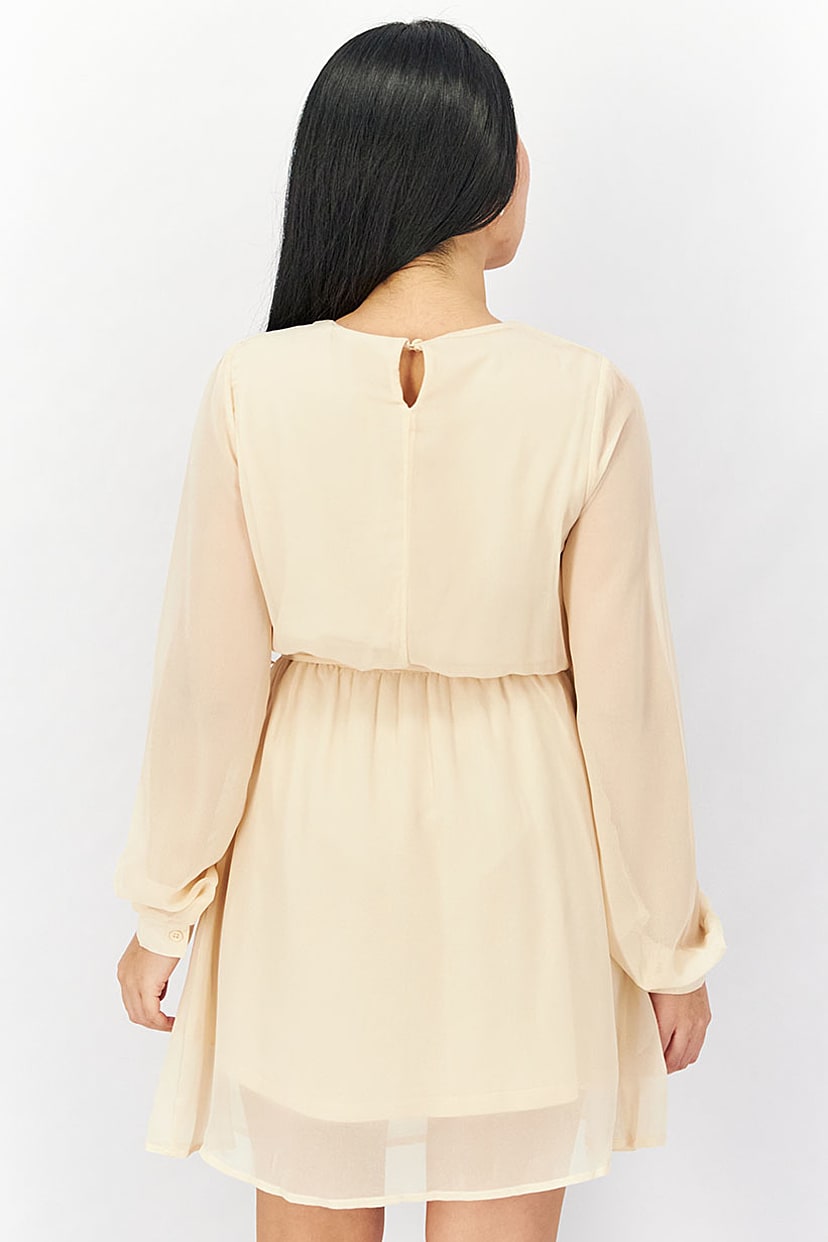 | nameOriginal | Women Textured Shift Dress, Beige |