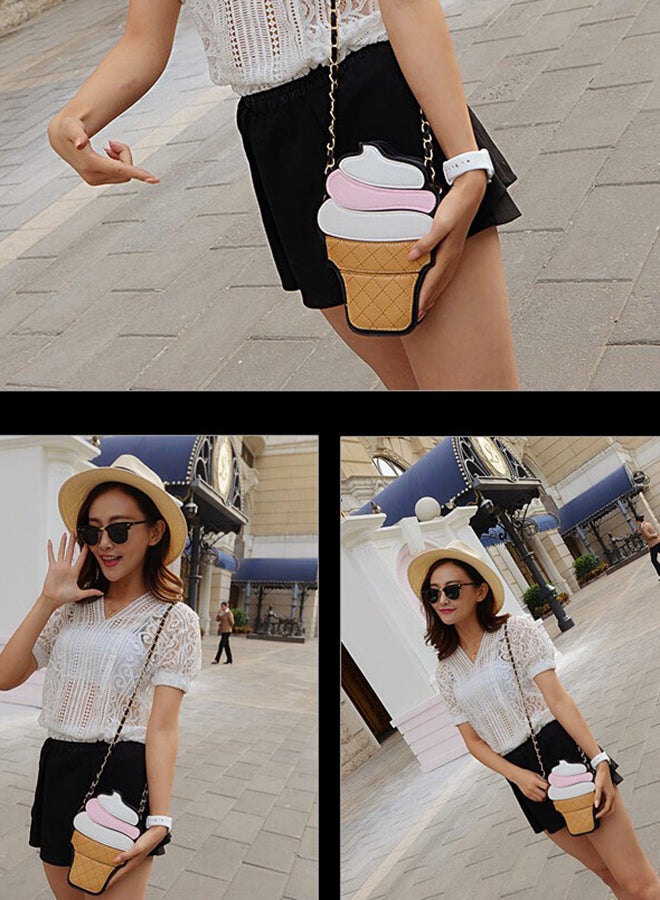 Introducing the Ice Cream Crossbody Bag in a delightful combination of beige, white, and pink! This adorable bag is perfect for any ice cream lover who wants to add a touch of sweetness to their outfit. The bag features a cute ice cream cone design with a sprinkle of glitter on top, making it a fun and playful accessory. The crossbody style allows for hands-free convenience, making it perfect for a day out with friends or running errands. The bag is made of high-quality materials, ensuring durability and longevity. With its unique design and practicality, the Ice Cream Crossbody Bag is a must-have for any fashion-forward individual looking to add a touch of whimsy to their wardrobe.