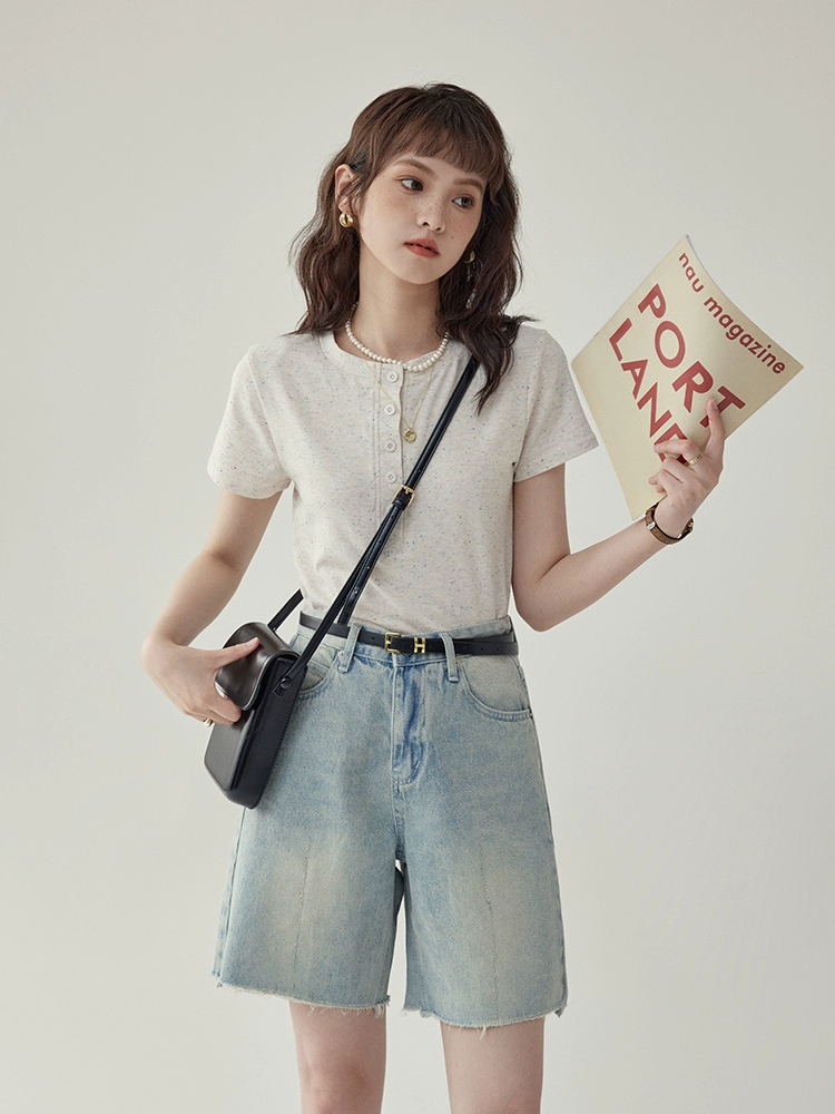| nameOriginal | "Beijima AMUU" French slim single-breasted gray versatile t-shirt summer slim design short-sleeved top |