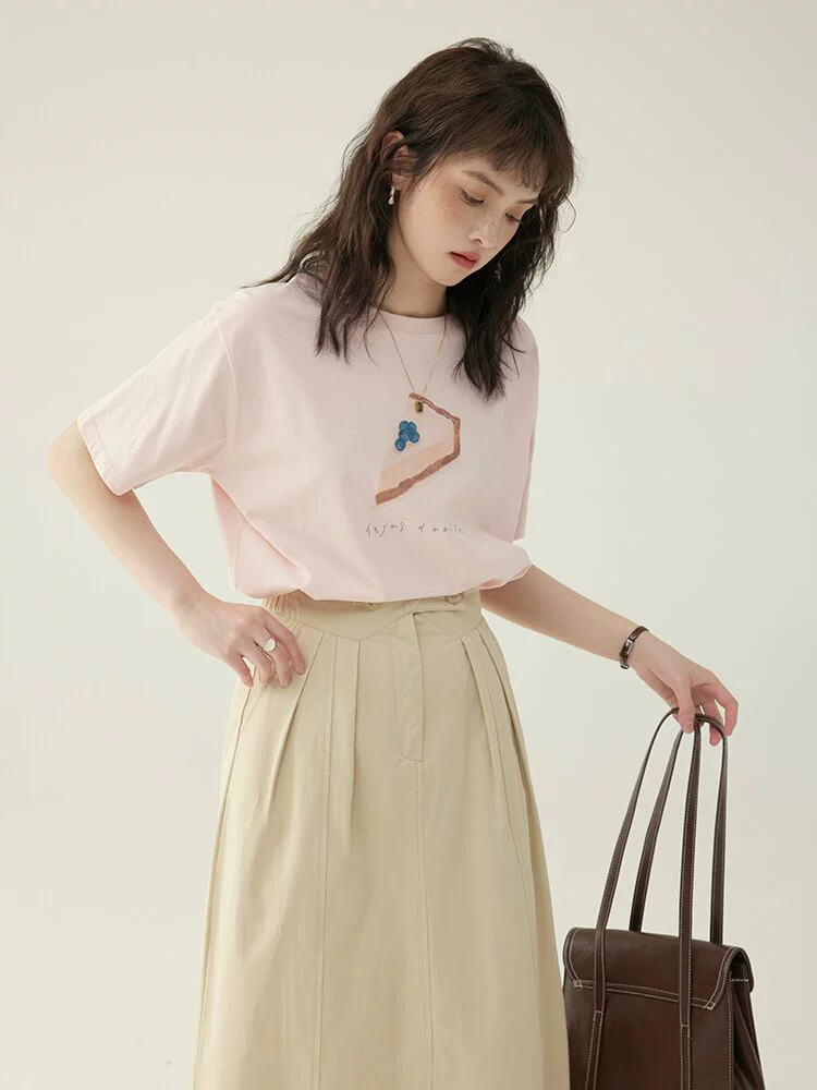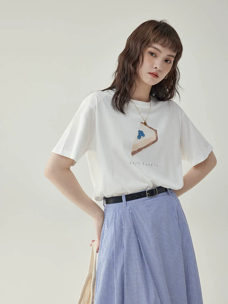 | nameOriginal | "Beijima AMUU" Japanese simple and versatile casual cake print t-shirt summer round neck short-sleeved T-shirt top |