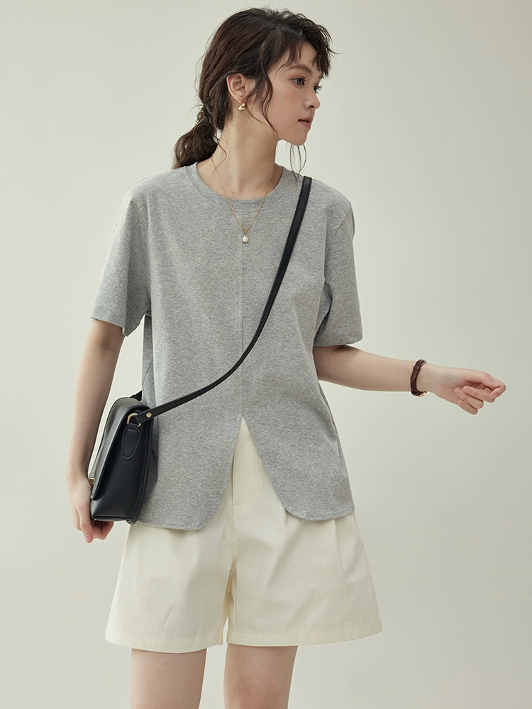 | nameOriginal | "Beijima AMUU Original" round neck solid color hem slit short-sleeved T-shirt for women summer loose slimming top for women |