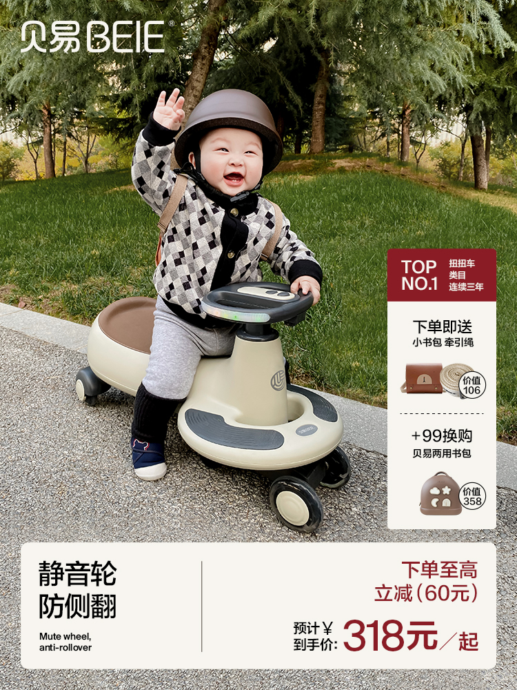 | nameOriginal | Beiyi children's twist car 1 to 3 years old yo-yo car silent anti-rollover baby niuniu car can sit on the adult rocking car |