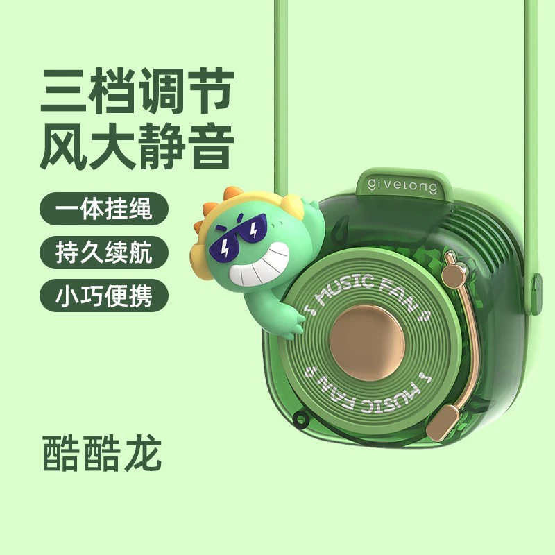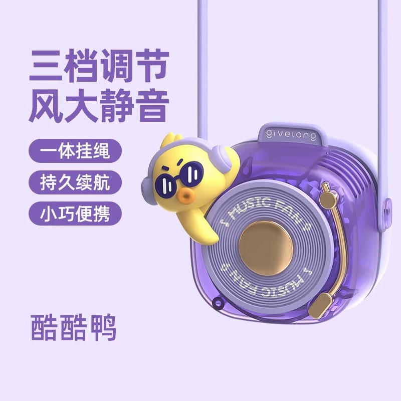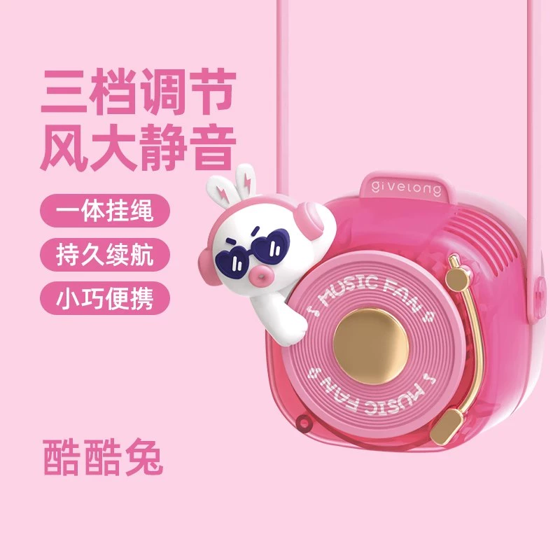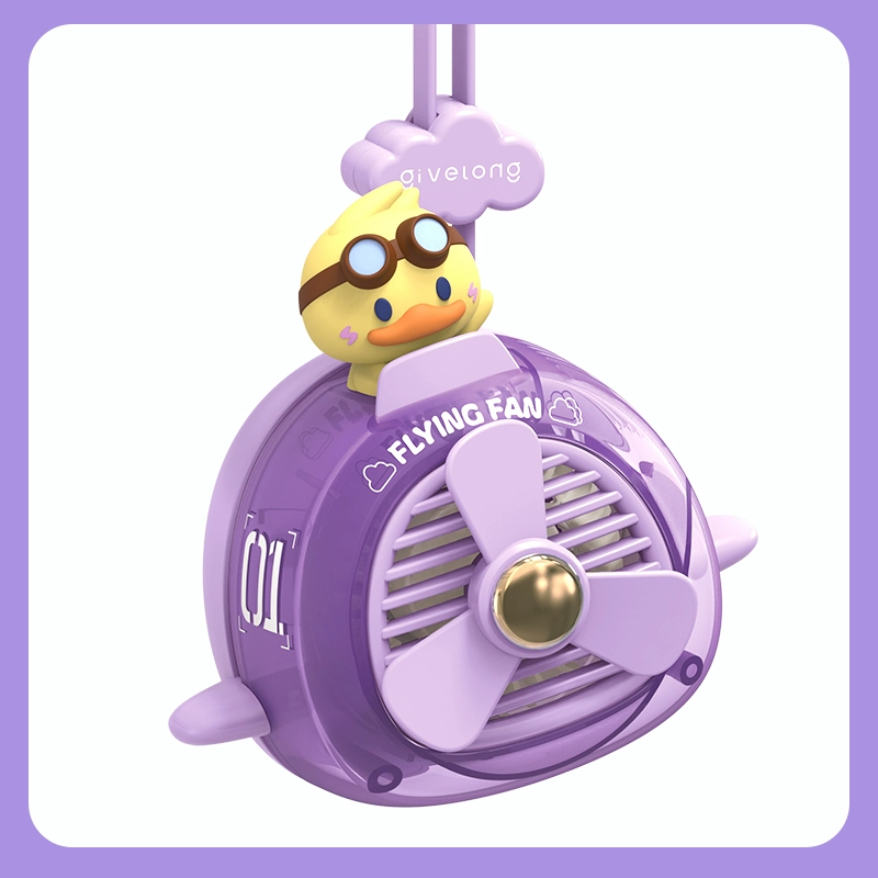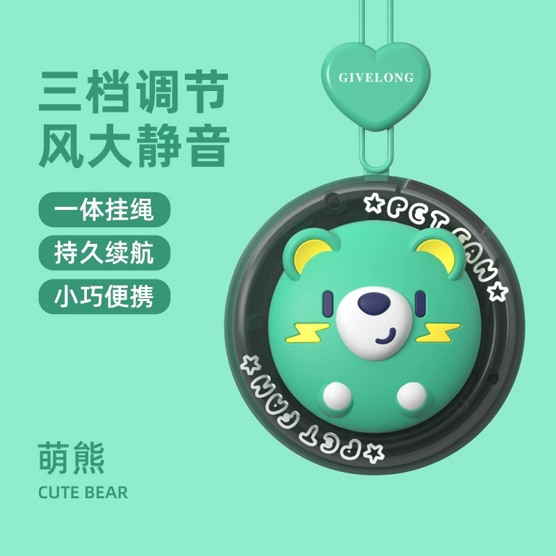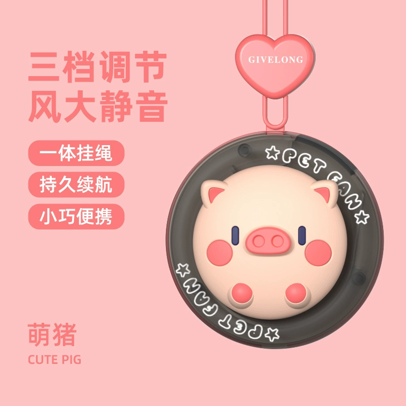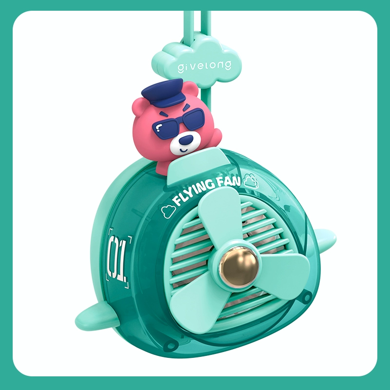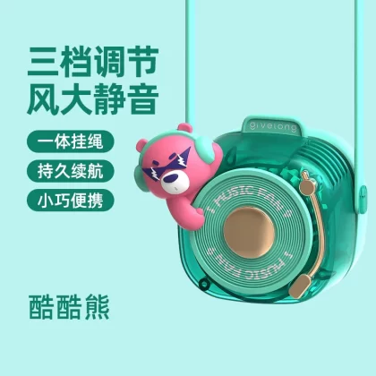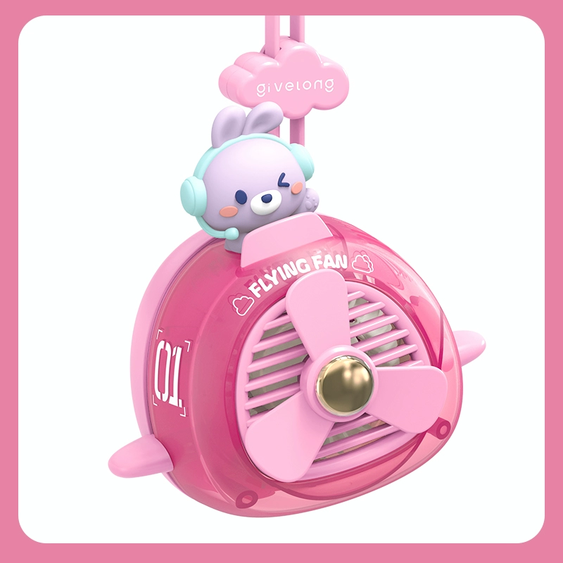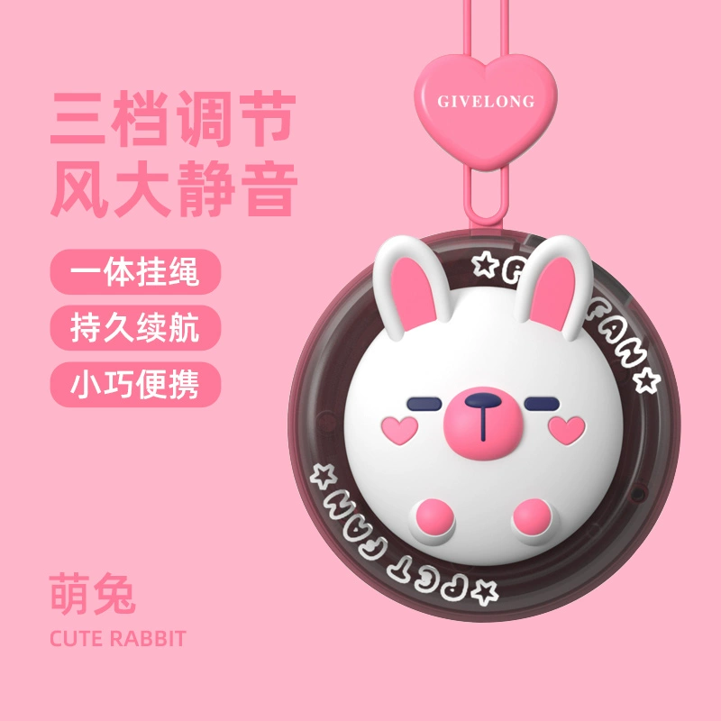 Bell children's hanging neck fan portable carry-on cartoon cute student lanyard leafless silent Children's Day gift