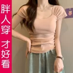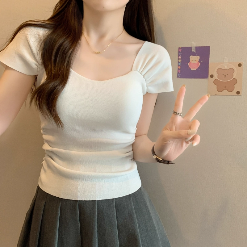 Belly-covering design, thin T-shirt, knitted short sleeves