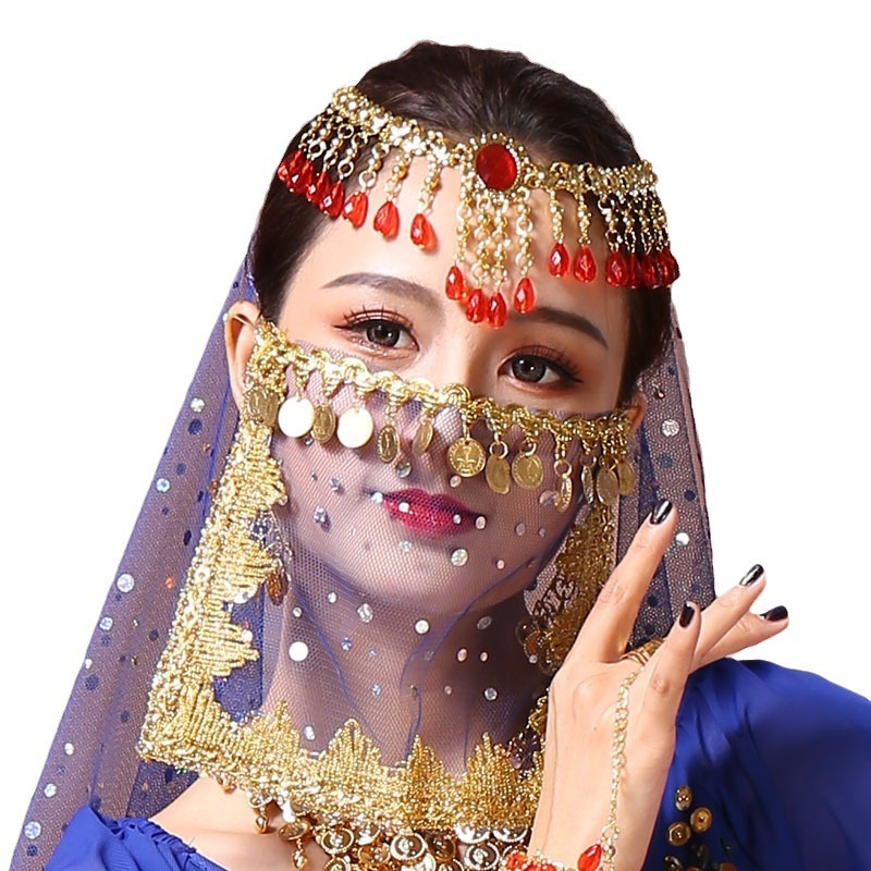 | nameOriginal | Belly dance 2023 spring/summer cos veil plum sequins Indian dance costume accessories face covering performance props |