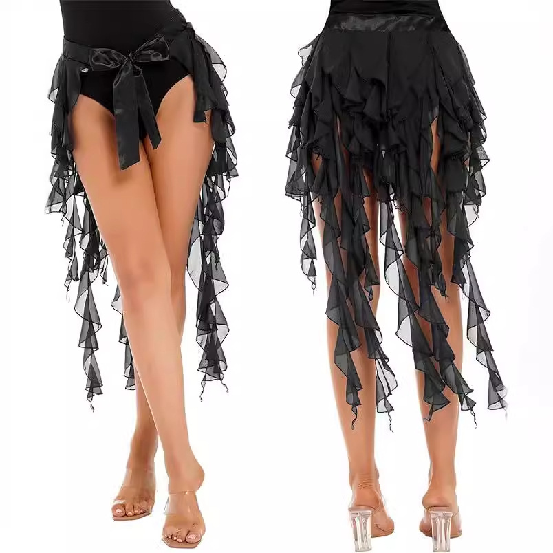 Belly Dance Hip Towel Skirt Nine-Tail Fox Waist Towel Chiffon Waist Seal Watch Performance Skirt Belt Waist Chain Waist Ornaments Lapes