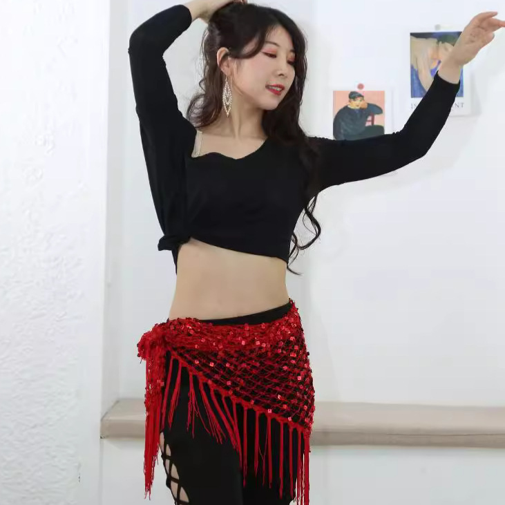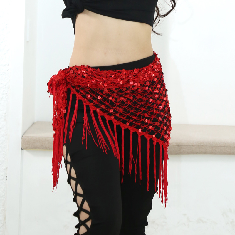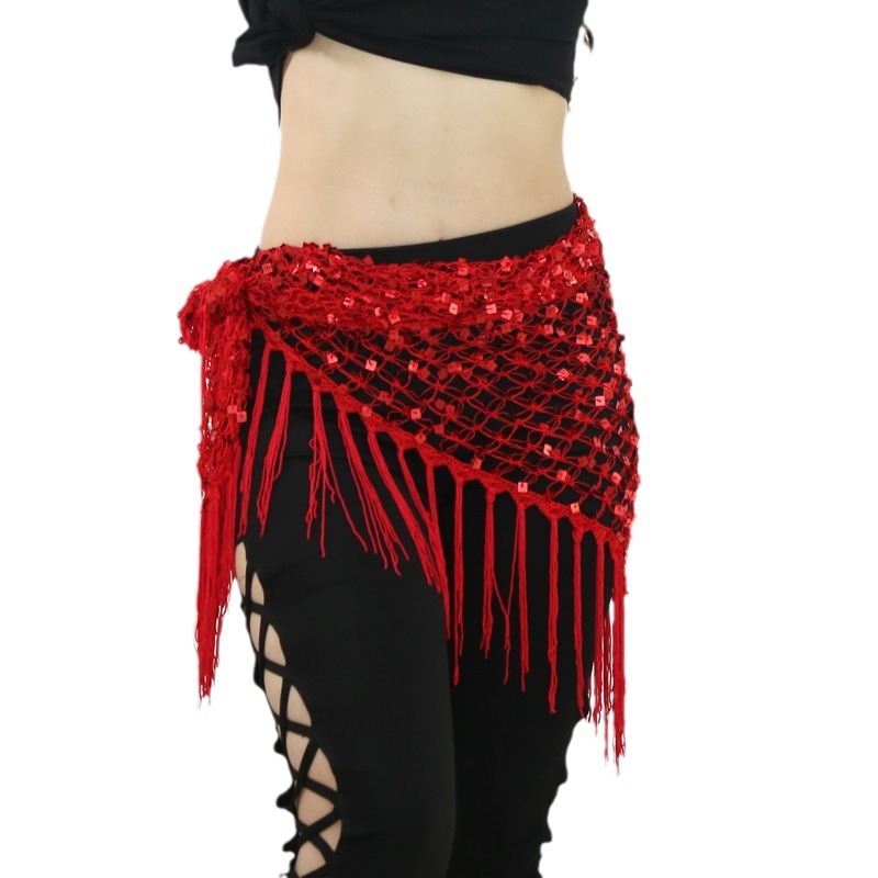 | nameOriginal | Belly Dance Waist Chain Sequin Triangle Towel Fishnet Hollow Shawl Hook Hip Towel Tassel Waist Towel Table Performance Accessories |