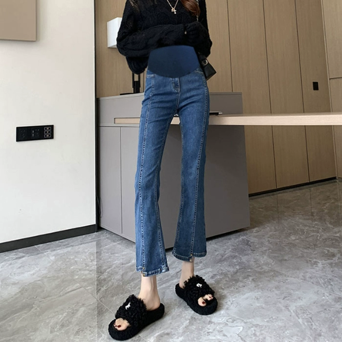 Belly-supporting spring denim cropped pants, fashionable maternity wear